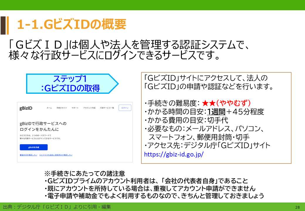 基本的な電子申請の手続きと、ステップ1:GビズIDの取得