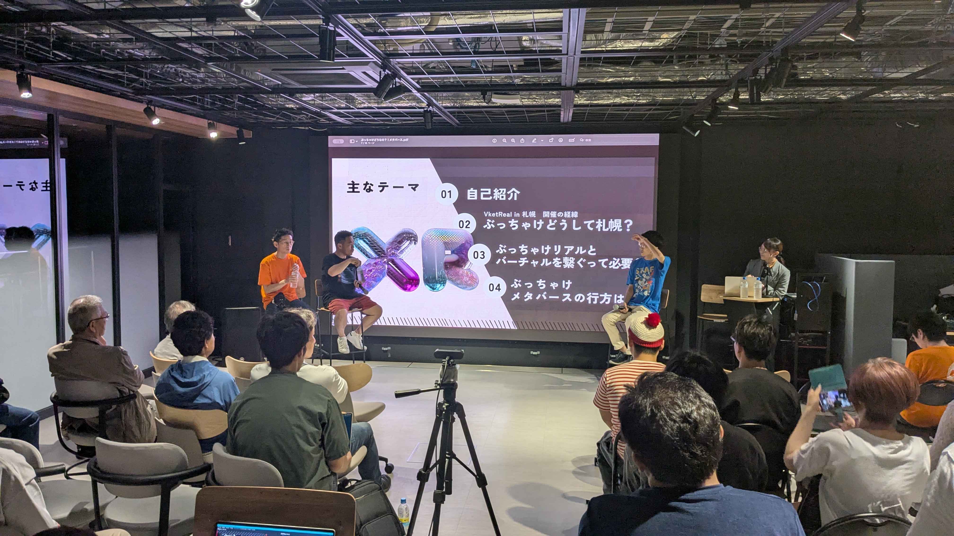 7月20日(日)はDeep Tech CORE SAPPOROにて、PANORA(株式会社パノラプロ)主催の「メタのみ@札幌 Supported by インフィニットループ」や、さっぽろイノベーションラボXR研究部会が主催するインタビュー・トークセッション「ぶっちゃけどうなの?メタバース」が開催され、約90人の来場者で賑わいました。株式会社HIKKYの舟越靖CEOやインフィニットループの「みゅみゅ」氏らが登壇し、メタバースの未来について熱い議論を展開。満員御礼の会場は、クリエイターやエンジニアの情熱で大いに盛り上がりました。