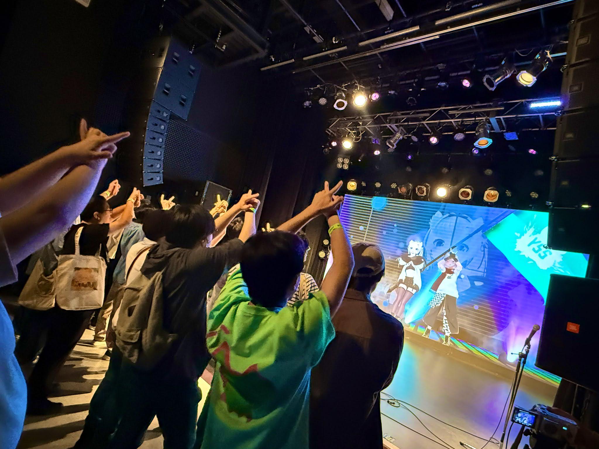 VketReal in 札幌 当日の午後、「VketReal in 札幌 スペシャルライブ」が札幌ミュージック&ダンス・放送専門学校にて開催されました。巨大なディスプレイと音響・照明装置を用いて、バーチャルの演出とリアルの演出を同期させたイマーシブなパフォーマンスで会場を沸かせました。