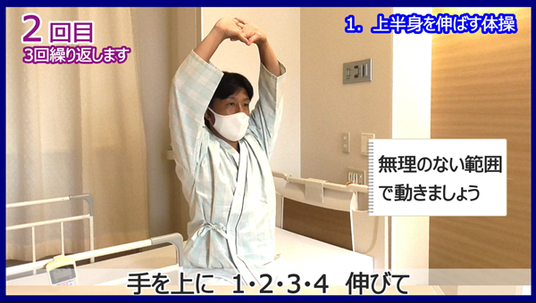 株式会社ルネサンス(本社:東京都墨田区、代表取締役社長執行役員:望月 美佐緒、以下「当社」)は、大阪国際がんセンター(以下「センター」)と共同で、入院中のがん患者が病室で行える運動を企画・映像化しました。今後も、入院中のがん患者のフレイル予防と運動啓発に向けて協力して取組を推進していきます。