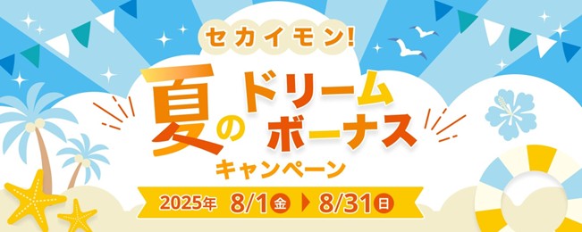 「セカイモン!夏のドリームボーナスキャンペーン」では、全商品対象の【手数料500円OFFクーポン × 4枚】を配布中です。