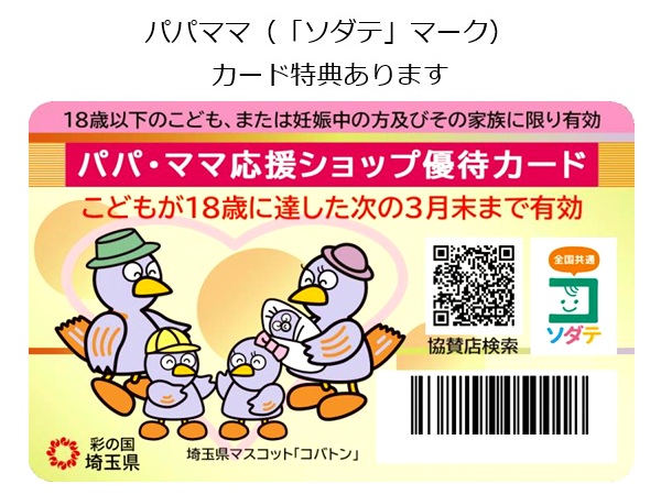 ★埼玉県「パパママカード」特典ございます★