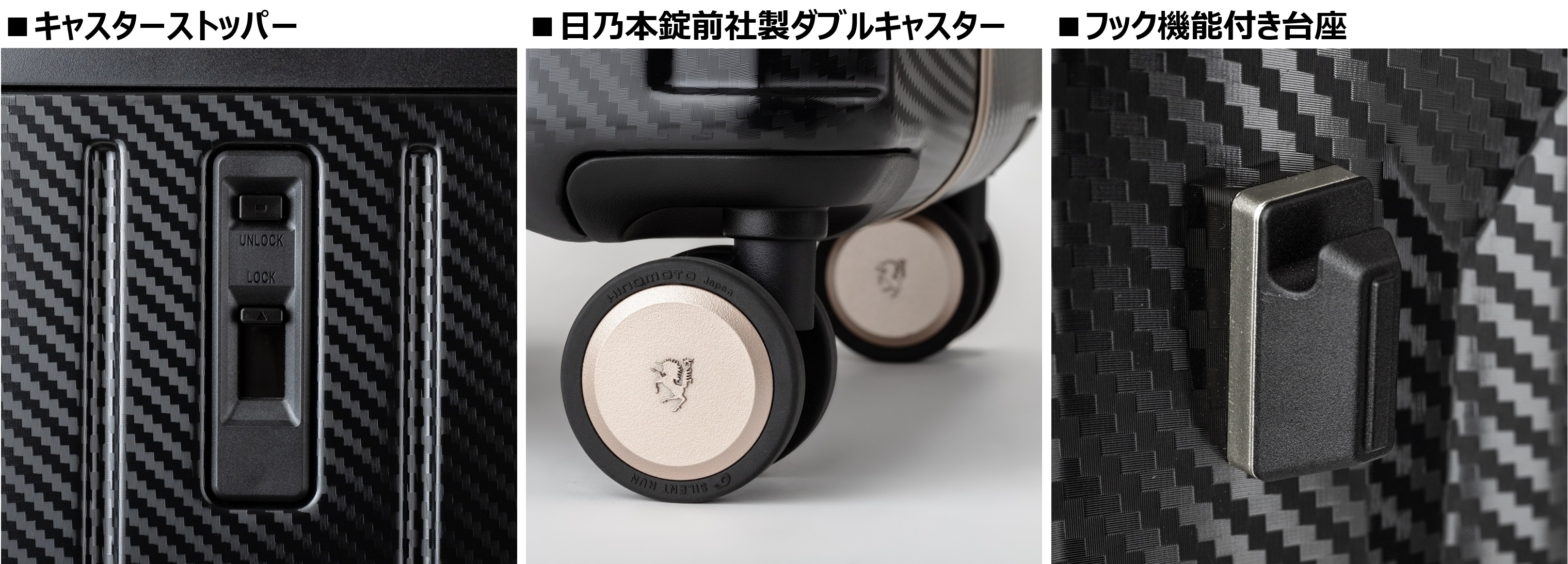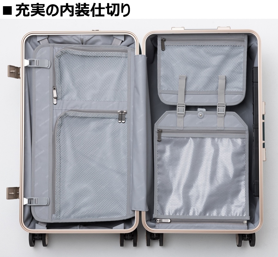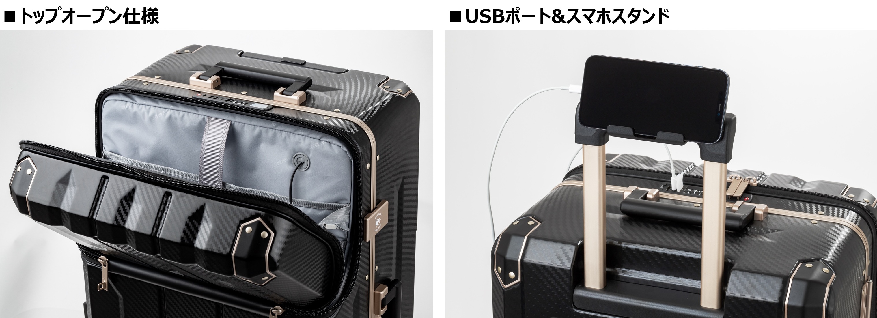 トップオープン仕様やキャスターストッパーなど、旅を支える快適機能をフル装備