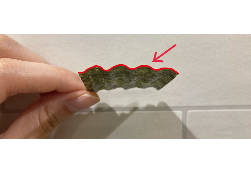 独自製法で生まれたナミナミ形状だから、今までにない噛みごたえのある食感を実現!従来のパリパリ、サクサクとした海苔の食感とは一線を画す「ザクッ」とした心地よい食感をお楽しみいただけます。波形状がもたらす立体的な空間が、噛むごとに深い味わいと新しい食体験を生み出します。