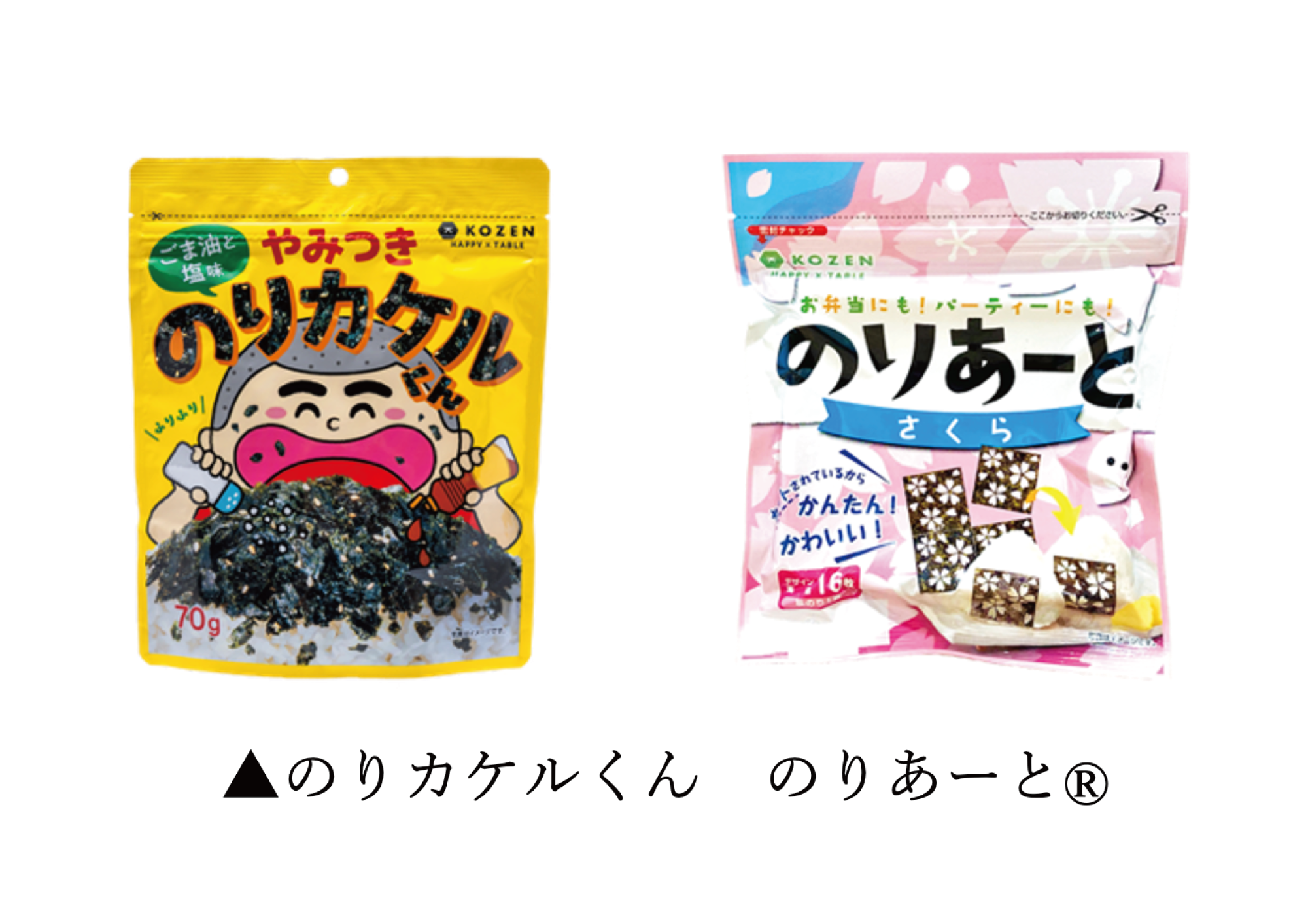 近年では、デザインを施した「のりあーと®」やフレーク商品「のりカケルくん」など、伝統的な海苔の枠を超えた商品を開発しています。
