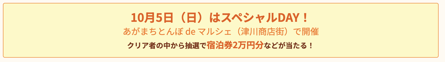 参加当日、道の駅 阿賀の里レジカウンターにお越しください。