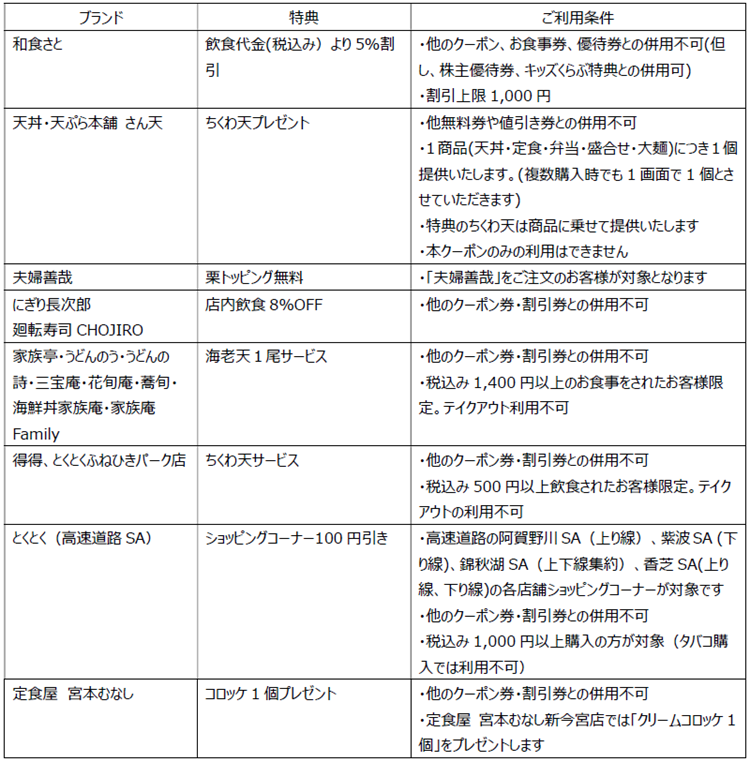 今回、ORA「宴キャンペーン」に追加参加する9店舗での特典、ご利用条件: