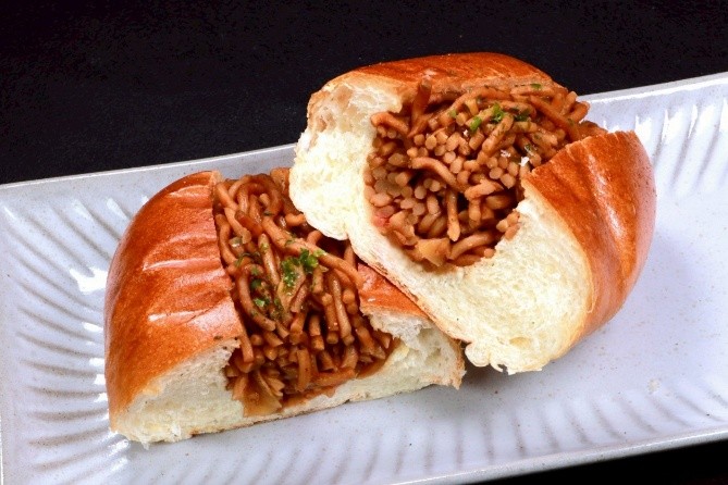今回の出店に伴い株式会社エーワンベーカリー(本社:大阪市北区、代表取締役:楊井雅生)との初のコラボ商品となる「ゆかりの焼そばパン」(500円)を発売します。創業70年を超える老舗企業同士が得意分野を活かし、作り上げた一品となります。