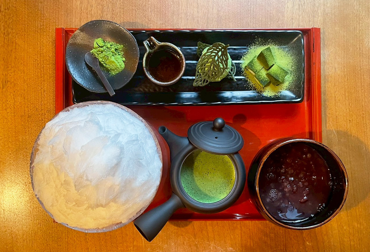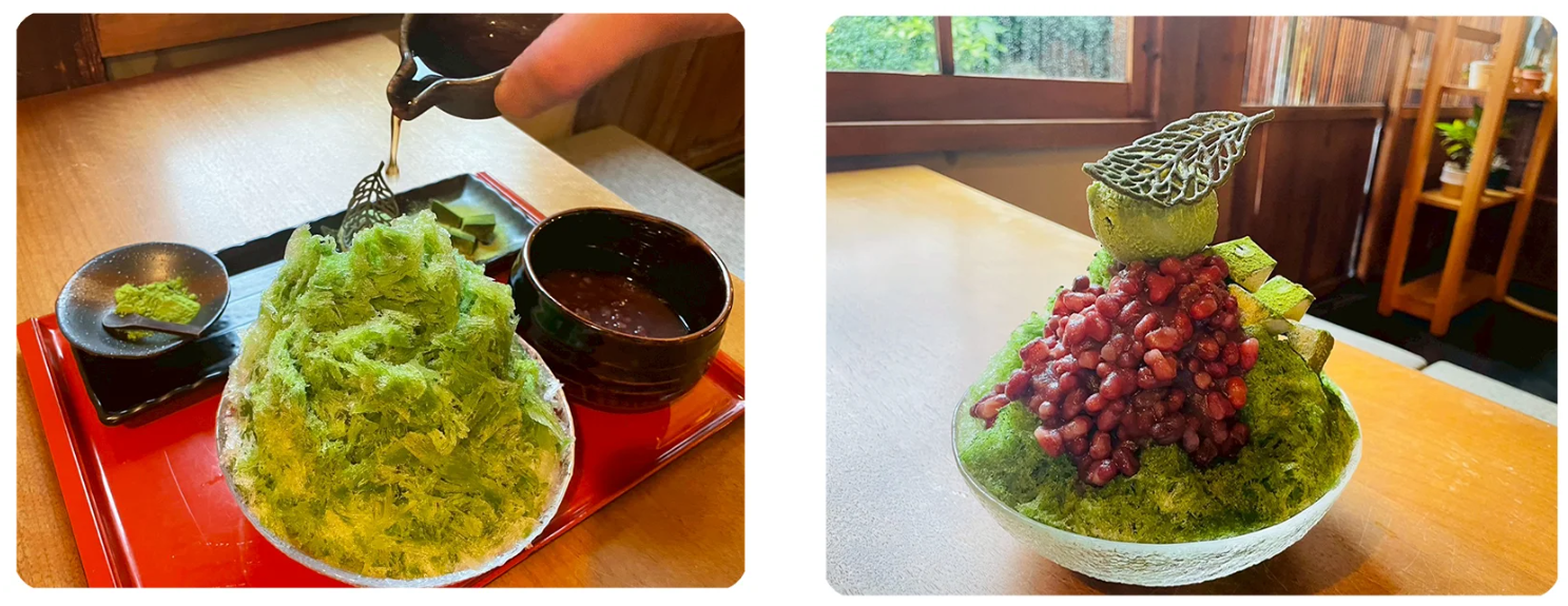 『かき氷』と『冷やし抹茶ぜんざい』。一皿で二度おいしい。