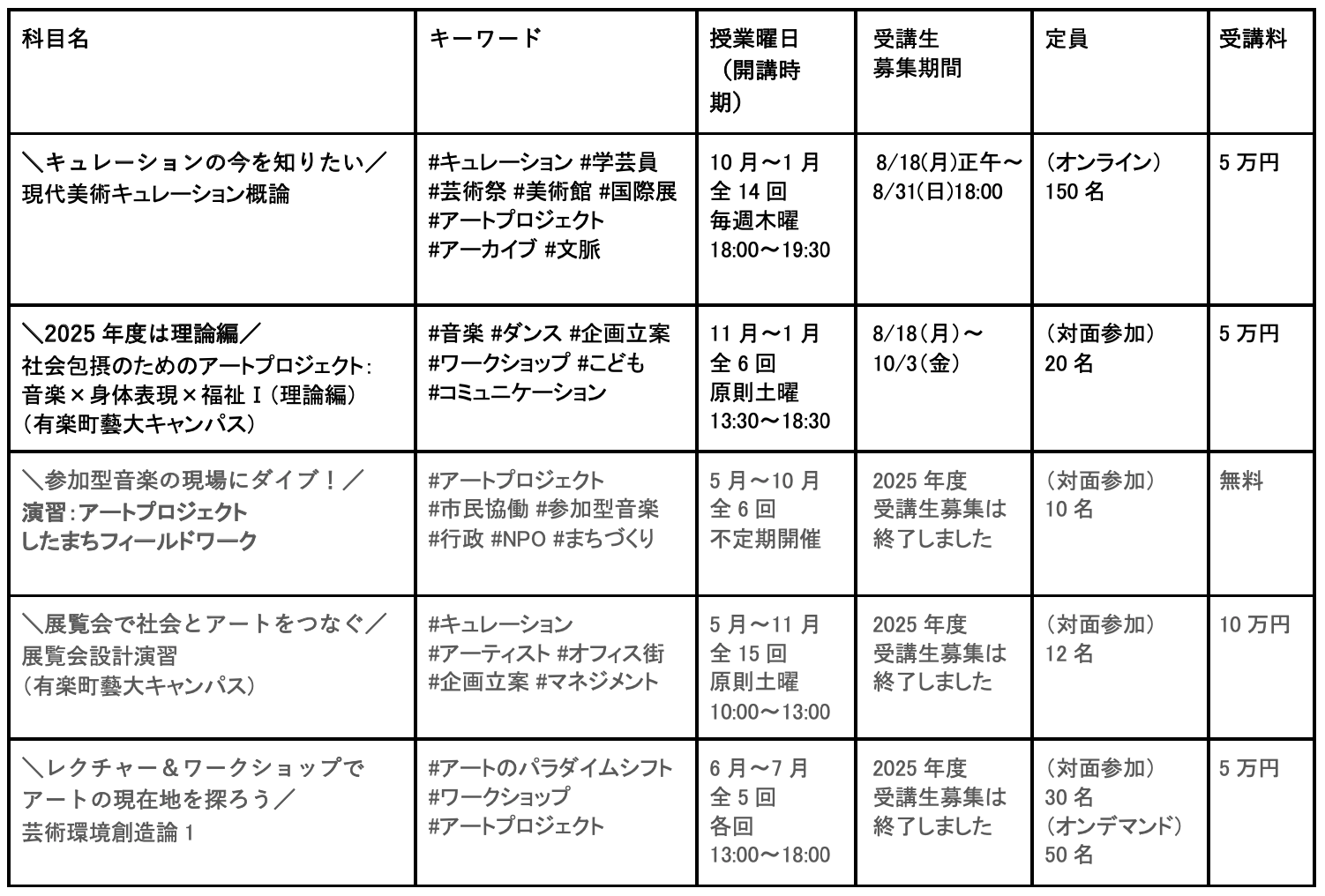 ▼2025年度「社会共創科目(公開授業)」一覧▼