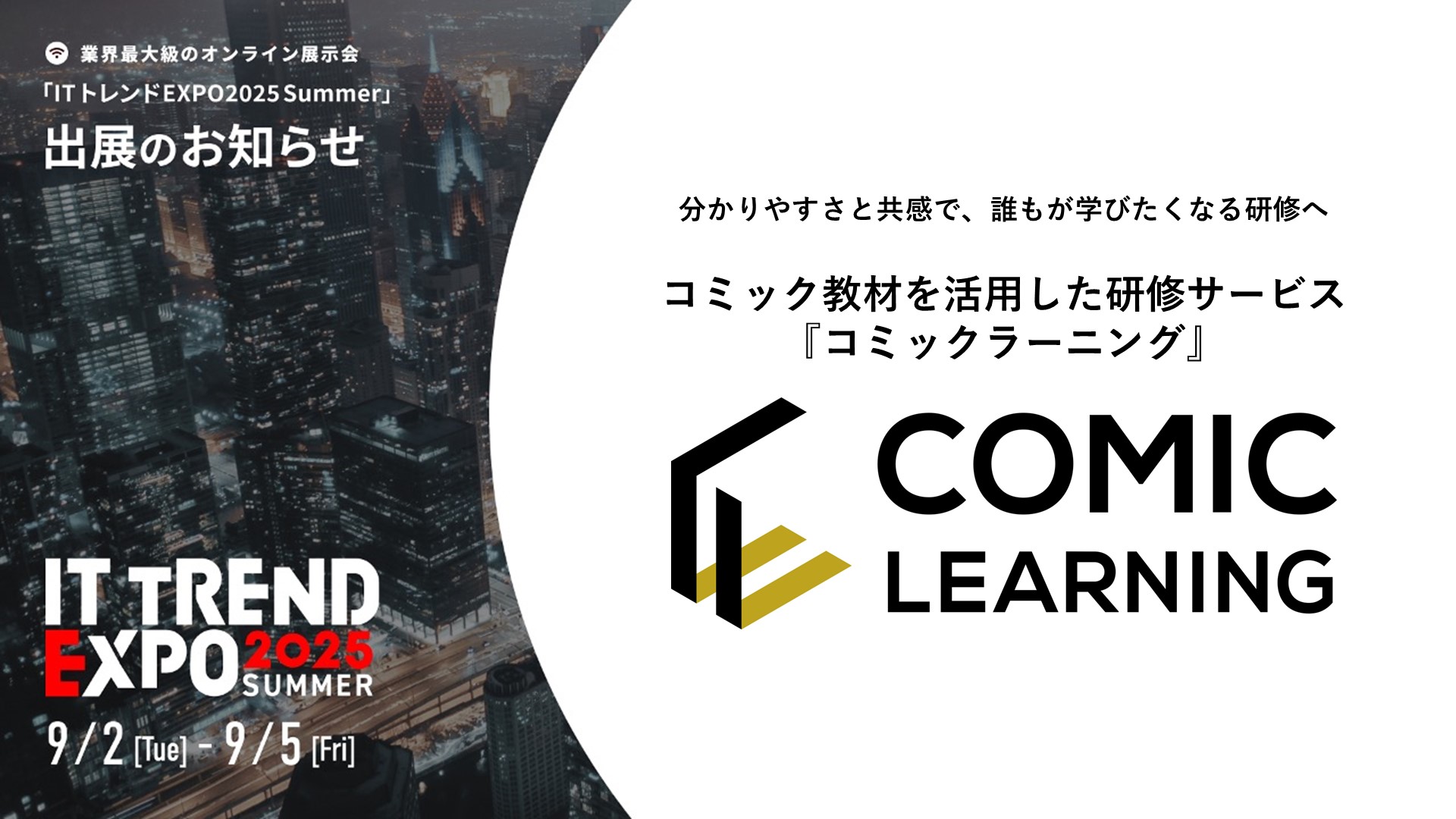 【日時:2025年9月2日(火)~9月5日(金)】『コミックラーニング』、2度目の出展となる「ITトレンドEXPO 2025 Summer」にて、コミックを活用した受講者の心を動かす研修を紹介