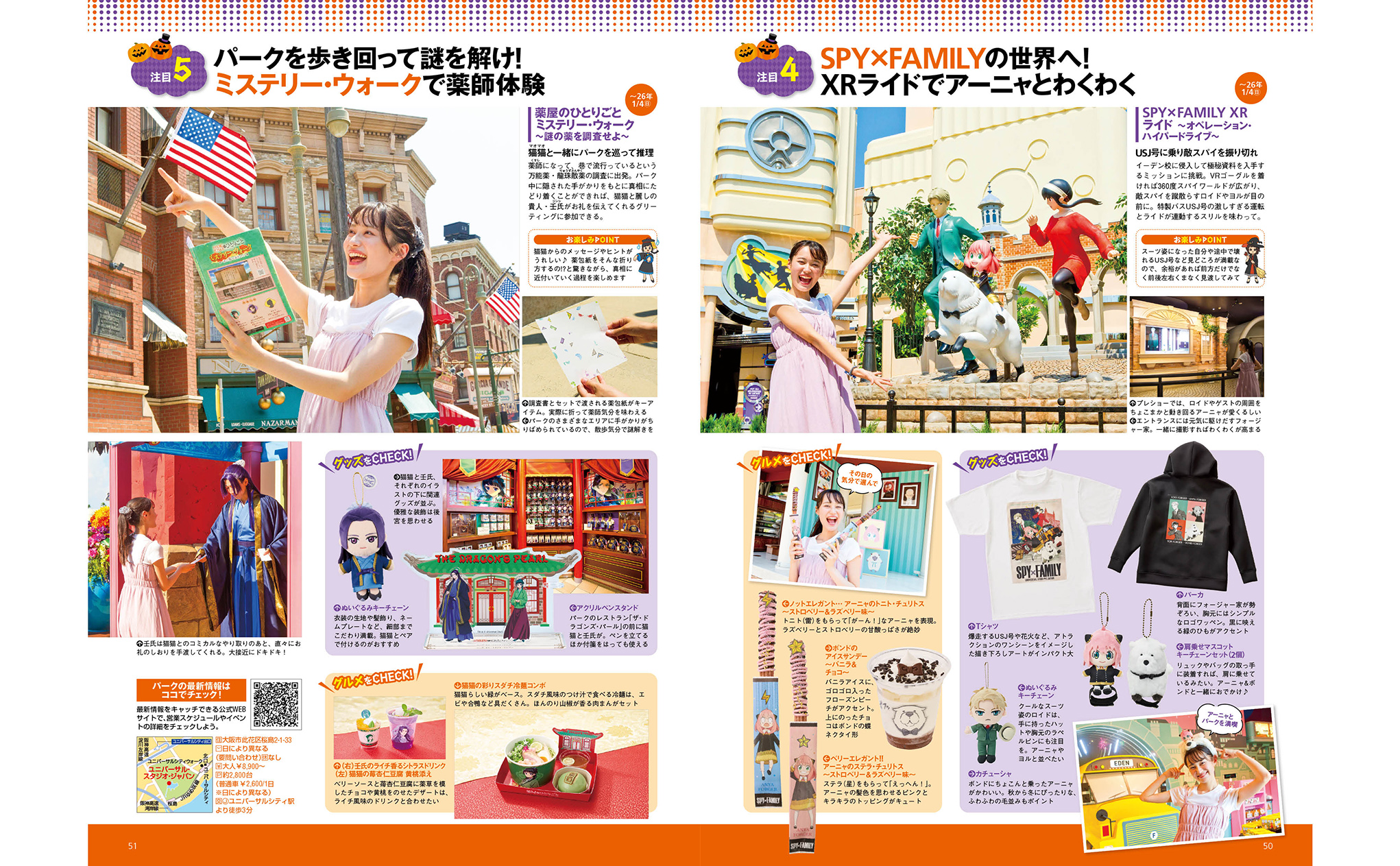 恐怖レベルがさらに進化した「ハロウィーン・ホラー・ナイト」や、新アトラクション「ミニオン・ハチャメチャ・ミッション~大悪党への道~」など秋のトピックスを6ページでたっぷり紹介。
