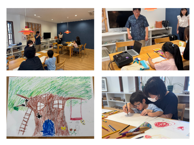 過去に能登半島地震の被災地である石川県で「理想の家のデッサン教室」を開催し、家屋の倒壊を目の当たりにした家族が、楽しく暮らせる家を想像・共有することの大切さを実感しました。その経験から、今後もさまざまな場所で同様のイベントを続けていきたいと思っていたところ、山根木材さんとのご縁で今回の開催が実現しました。今回も絵を描くことが好きなお子さんたちが集まってくれて、楽しく考えながら作業してくれたことをうれしく思います。この日の体験が彼らの中で素敵な思い出として残ってくれると嬉しいです。