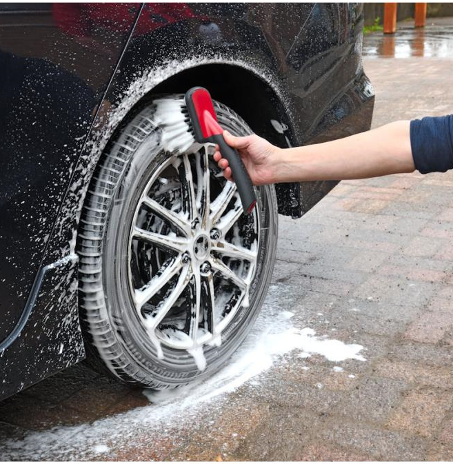 タイヤも、ホイールもこれ1本!独自の山切りカットの毛先で、細部の汚れを掻き出せます。