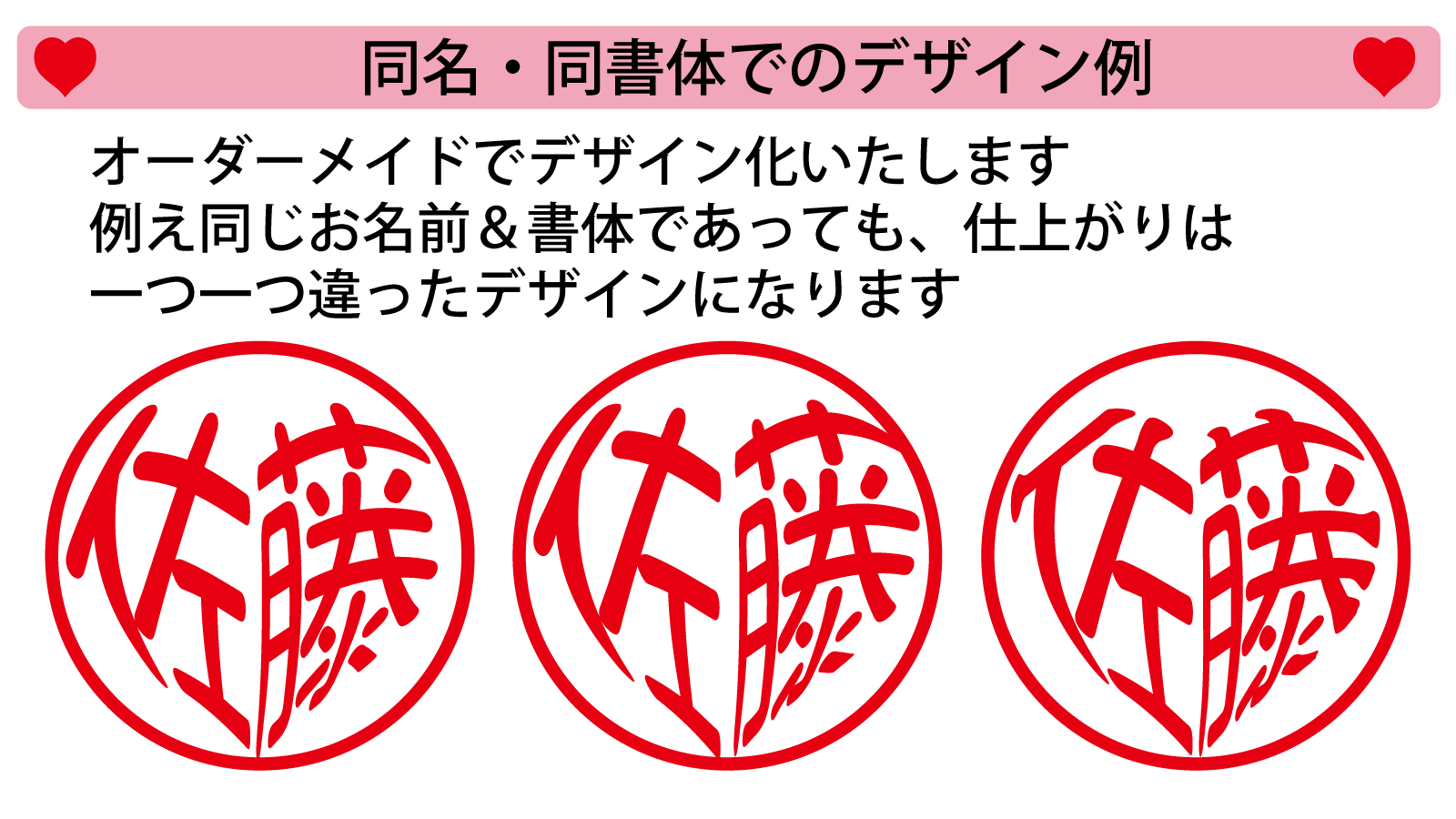 そのため、書体を選ばず自然な形でお名前の判読性とハートの形を融合することが可能となりました。