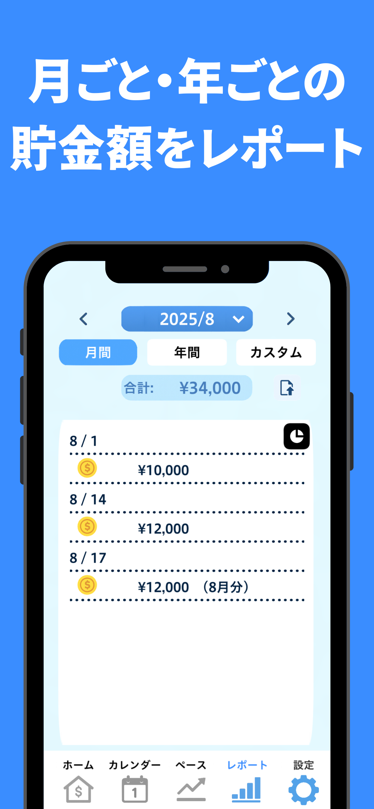 そんな時に、ただ金額を管理するだけではなく カレンダーで可視化し、進捗を実感しながら続けられる のが本アプリの特徴です。