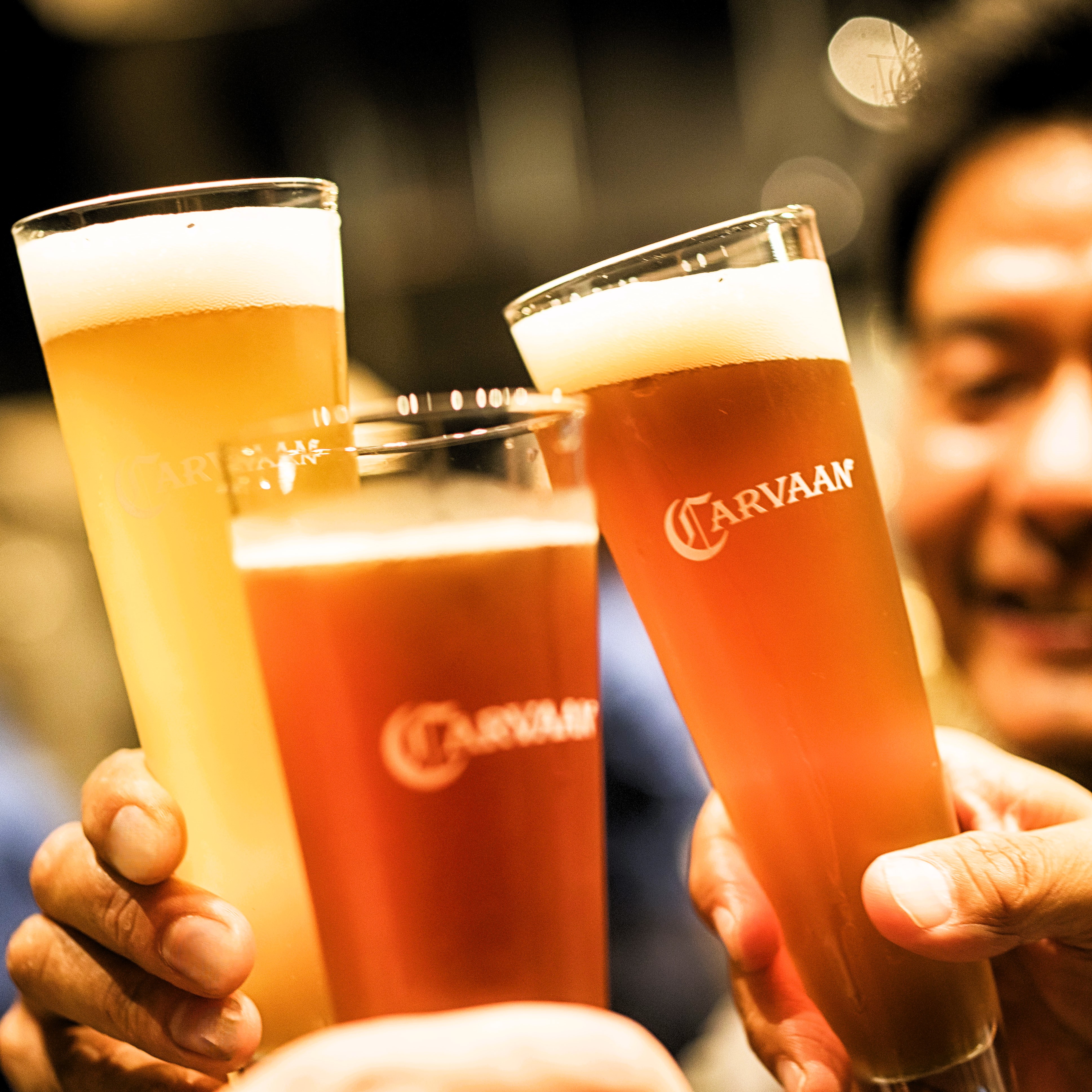 「歴史が映り、文化が薫る」CARVAANのビール。世界最古のモルト製造所のモルトやホップをベースに、アレキサンダー大王の港町で実るライム、アンデス山麓のカカオ豆など、世界各地から直輸入する特別な原料を使い、飯能市河原の渓谷の崖っぷちに立つブルワリー&レストランで造っています。