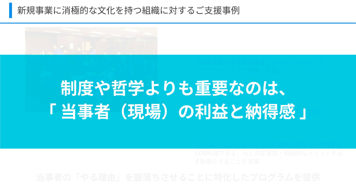 - 現場の利益と納得感を重視するアプローチ