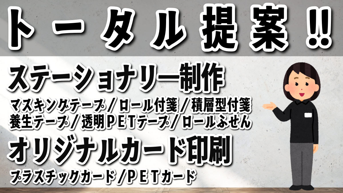 ステーショナリー制作なら tokyoanrishop.com へご相談ください。実店舗での対面相談可能(ロール付箋、マスキングテープ、透明PETテープ、養生テープ、積層型付箋のオリジナル印刷可能)