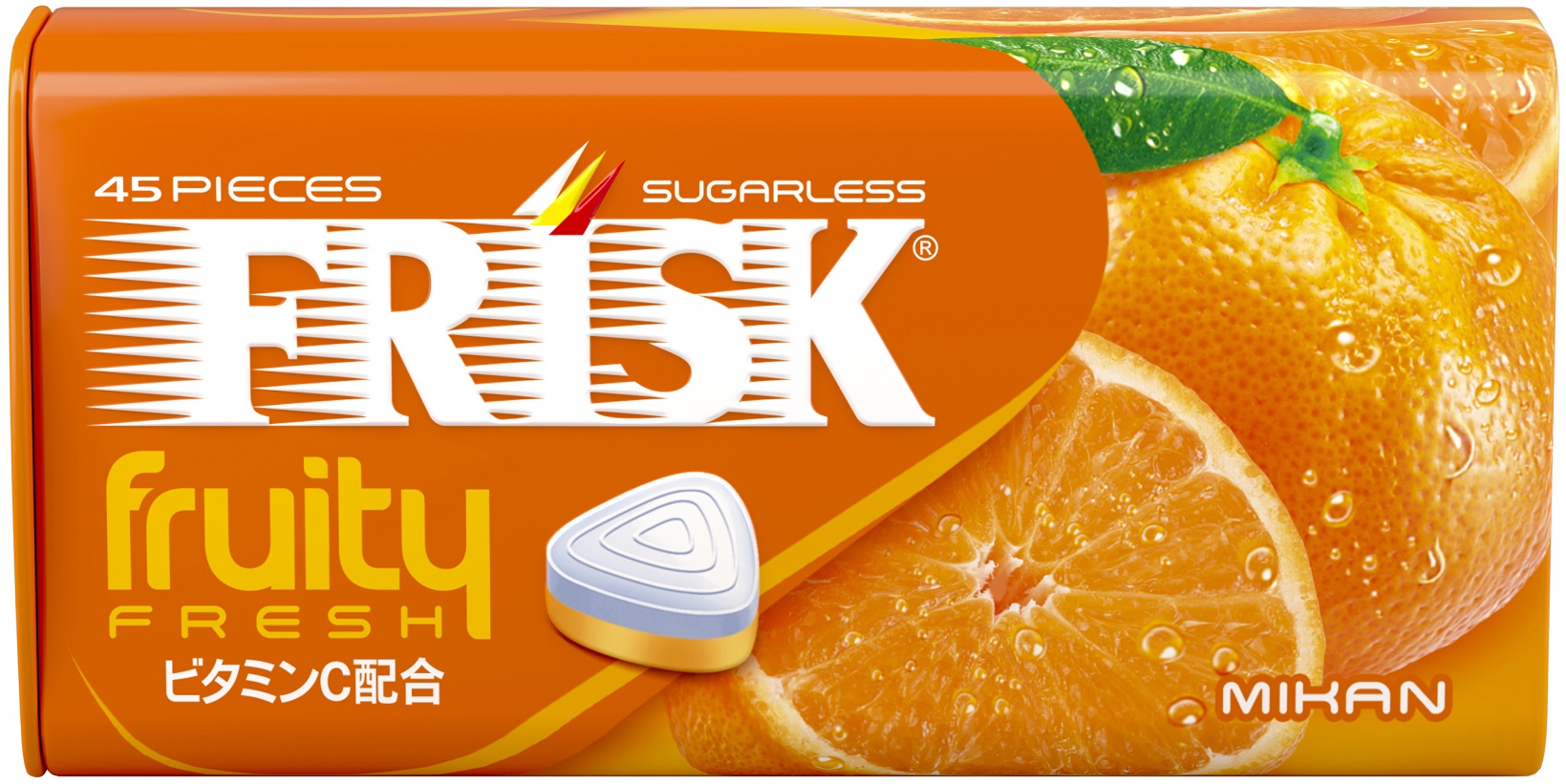 「フリスク フルーティーフレッシュ みかん」は、口に入れた瞬間に、甘美ですっきりとしたみかんの美味しさが広がり、その味わいが長続きする大粒タブレットです。ビタミンCを配合しており、手軽にビタミンCを補給しながら、味わいを楽しむことができます。おいしさで気持ちをリフレッシュできるとともに、口さみしさや空腹感を健康的に紛らわせます。