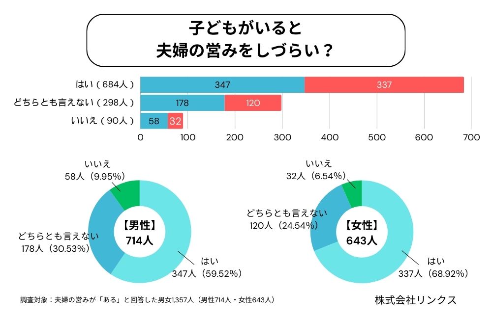 - 子どもがいると営みを「しづらい」と感じる人は約6割。