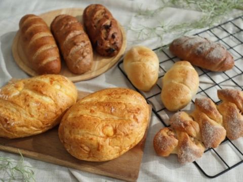 全10個程度のパン(3種のチーズフラン2個・その他セミハード・ハードパン8個程度)