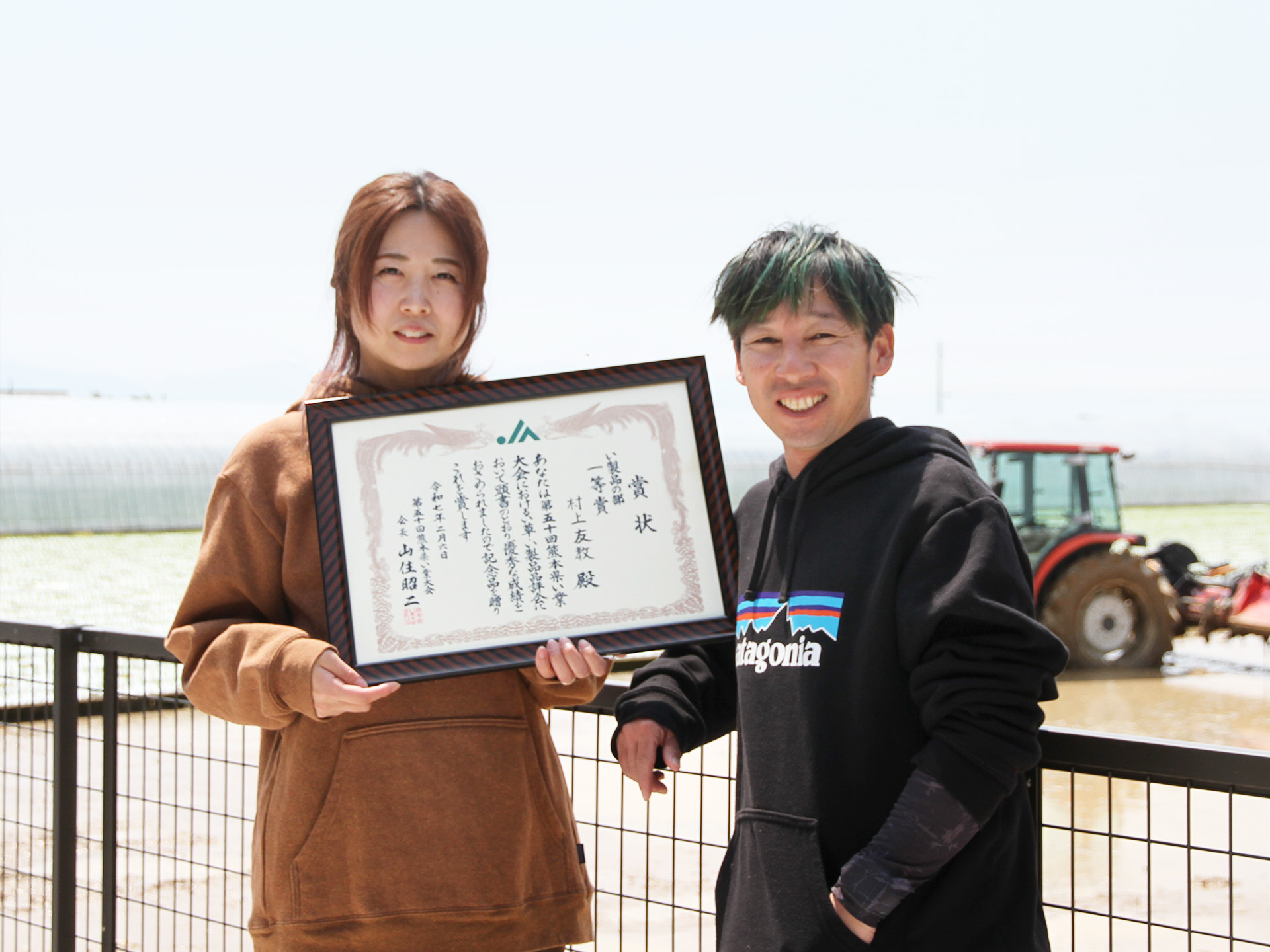 村上友教さんの曾祖父の代から続く農家の四代目(い草農家としては三代目)。そのい草づくりは、毎日欠かさず田んぼを見ながら、い草に触れて状態を確認し、い草の生育の手助けをしているような感じだと言います。い草のことをもっと知ってもらいたいとの思いから、TikTokでは「イグサック」として活動中。