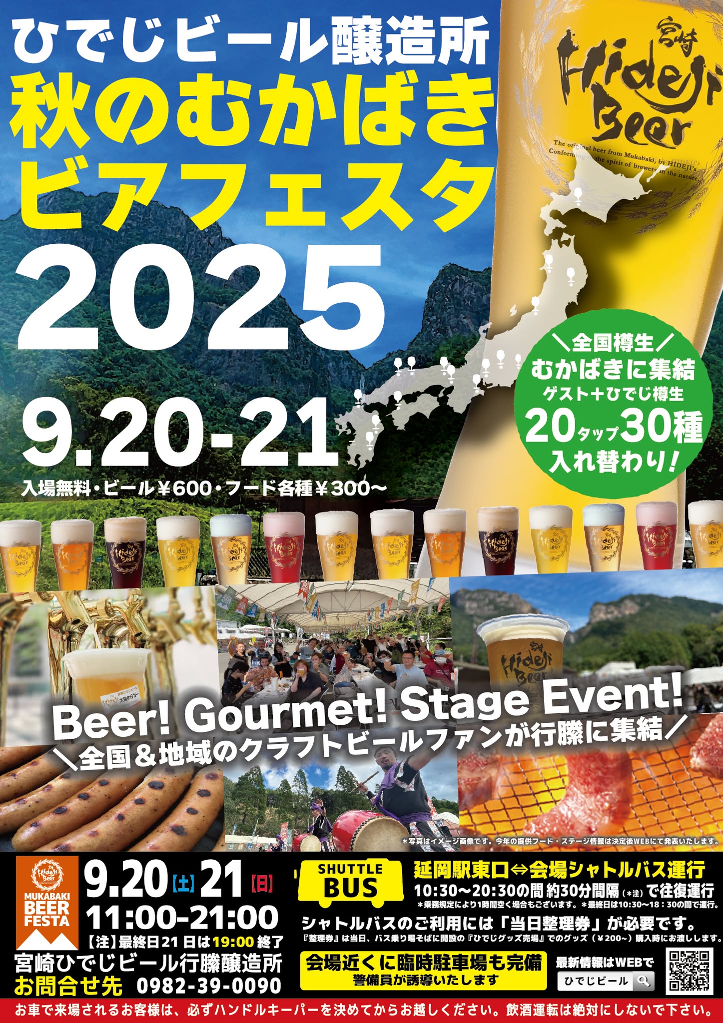 地域に根差したクラフトビール醸造を行っております、宮崎ひでじビール株式会社(本社:宮崎県延岡市行縢町747-58、代表取締役:永野時彦)は、2025年9月20日(土)・21日(日)の2日間、自社醸造所の敷地内にて、地域最大級のクラフトビールイベント「秋のむかばきビアフェスタ2025」を開催いたします。本イベントは、延岡市の象徴ともいえる名山「行縢山(むかばきやま)」の麓で2011年よりスタートし、今年で14回目の開催を迎えます。 「クラフトビールの多様な魅力を伝えたい」「県内外から延岡にお客様を集めて地域を盛り上げたい!」という想いを出発点に、地域の方々と手を取り合いながら年々規模を拡大し、今では全国から多くのクラフトビールファンにお越しいただけるイベントとなりつつあります。