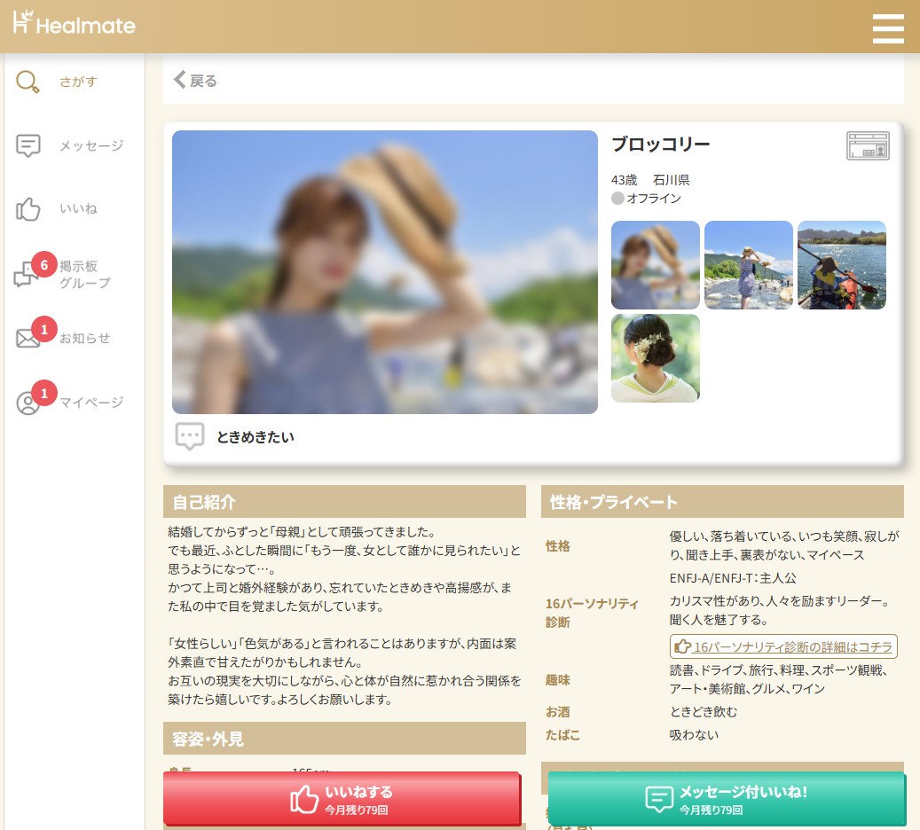 プロフィールが充実しているのも、ヒールメイトの特徴です。