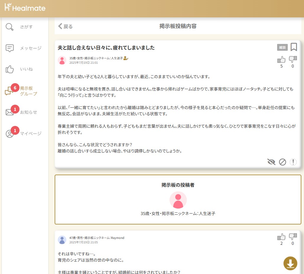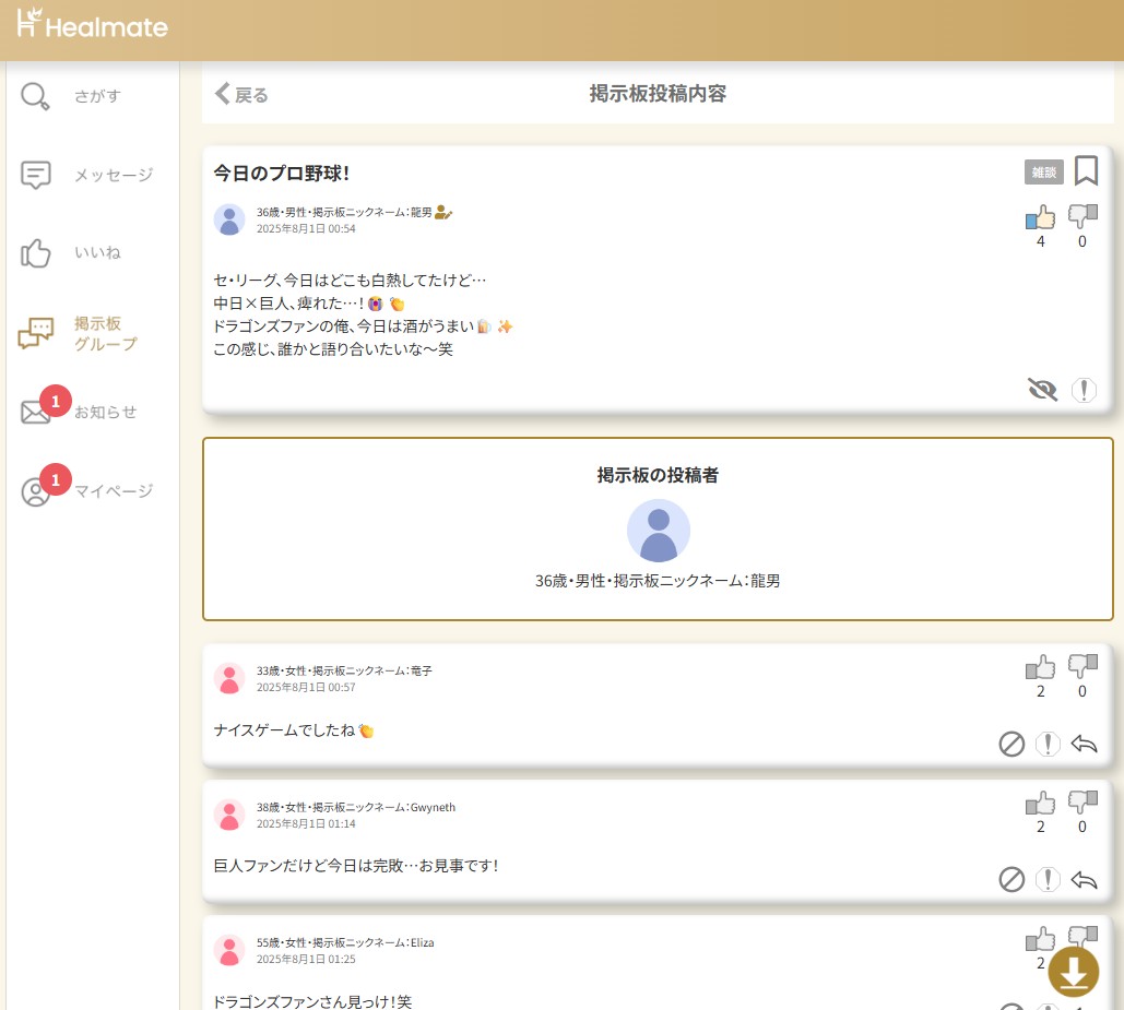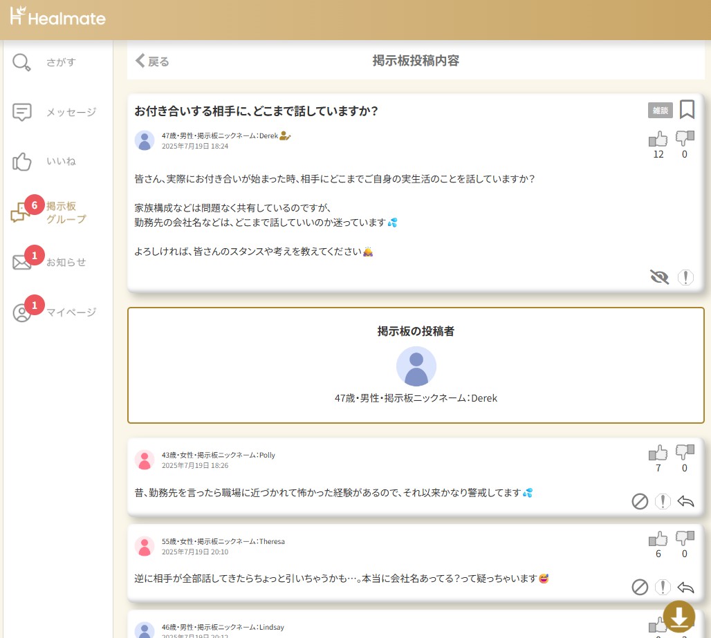 ヒールメイトの『掲示板』機能、活発な意見がされていますね