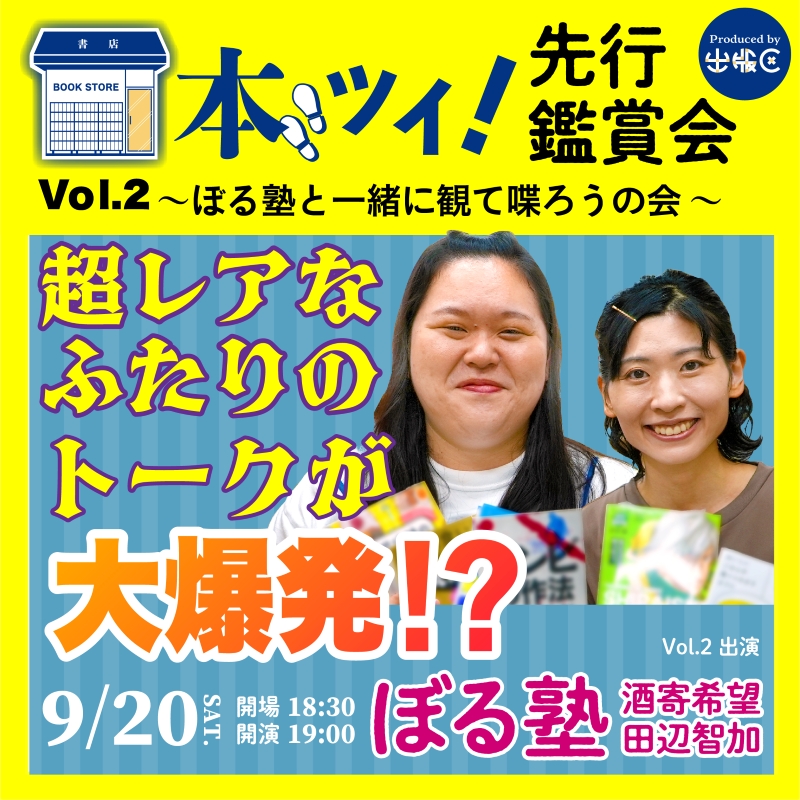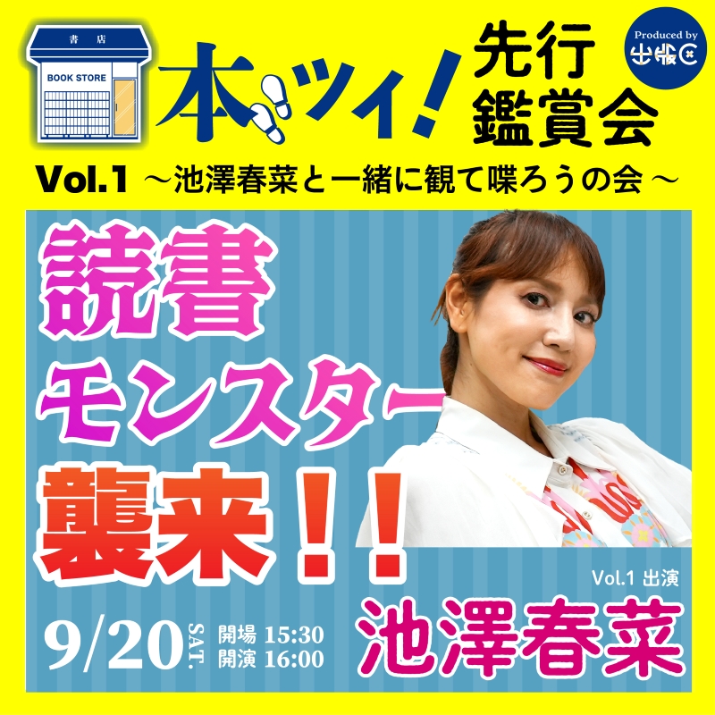 株式会社トーハン(本社:東京都新宿区、代表取締役社長:川上浩明)が運営するYouTubeチャンネル「出版区」は、2025年9月20日(土)にイベント「本ツイ!先行鑑賞会~ゲストと一緒に観て喋ろうの会~」を開催、会場観覧と併せてオンライン生配信を実施します。ゲストには、第1部に声優・作家の池澤春菜さん、第2部にお笑い芸人のぼる塾 酒寄希望さんと田辺智加さんをお迎えします。8月21日よりチケットを販売中です。