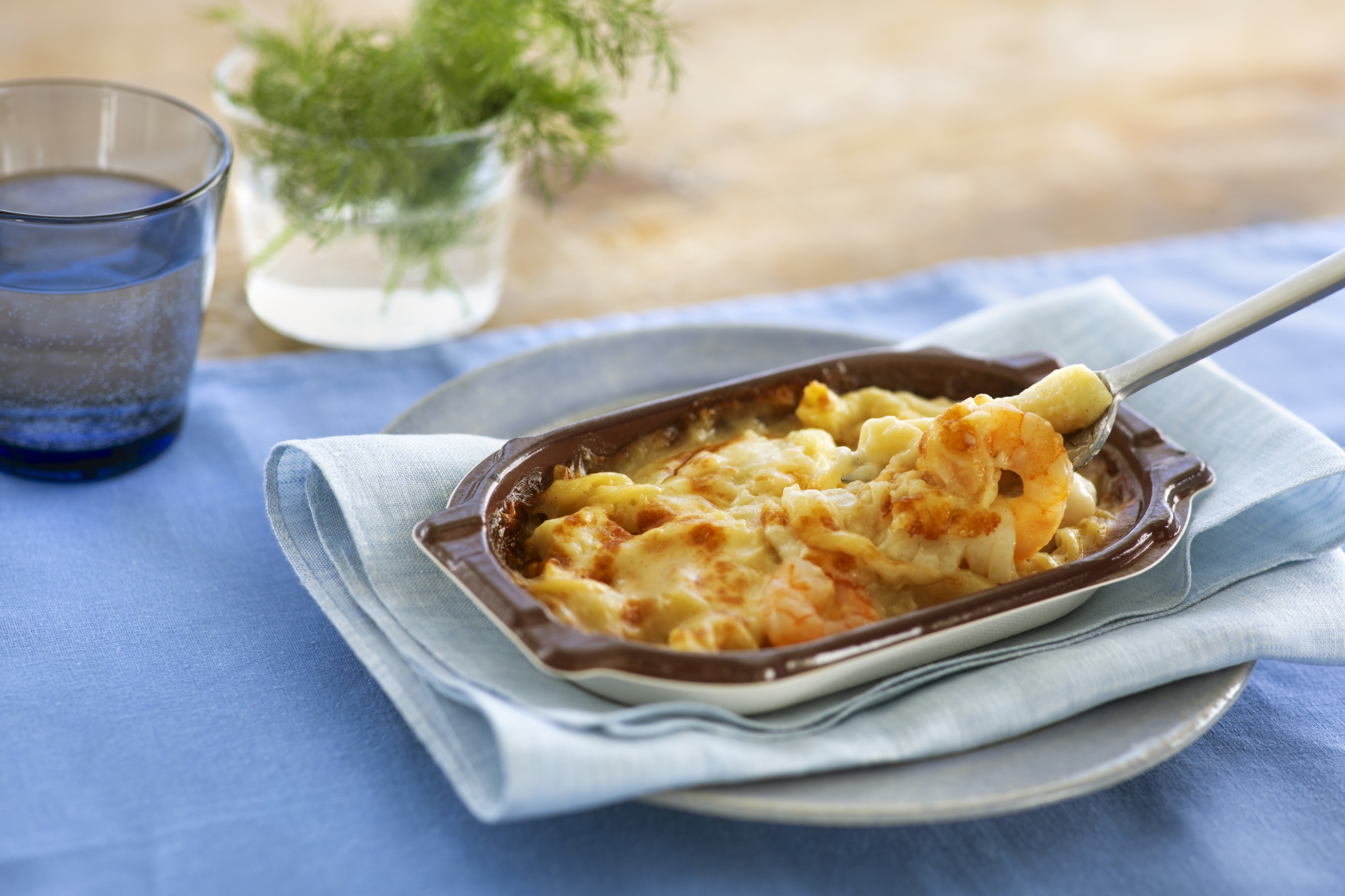 自家製ホワイトソースに、海老・イカ・小柱の3種のシーフードをあわせた、深い味わいのグラタンです。