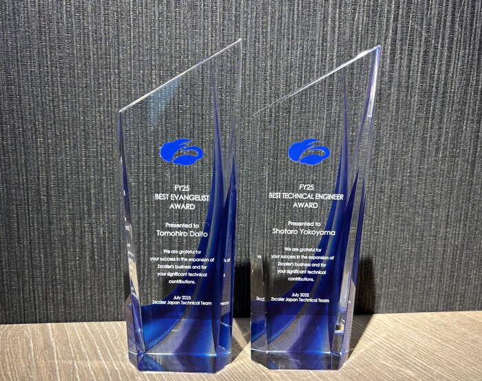 SB C&S株式会社(以下「SB C&S」)は、Zscaler, Inc.(本社:米国カリフォルニア州、以下「ゼットスケーラー」)の日本法人ゼットスケーラー株式会社が個人に贈る賞、「Best Evangelist Award」と「Best Technical Engineer Award」を当社のエンジニアが受賞しました。