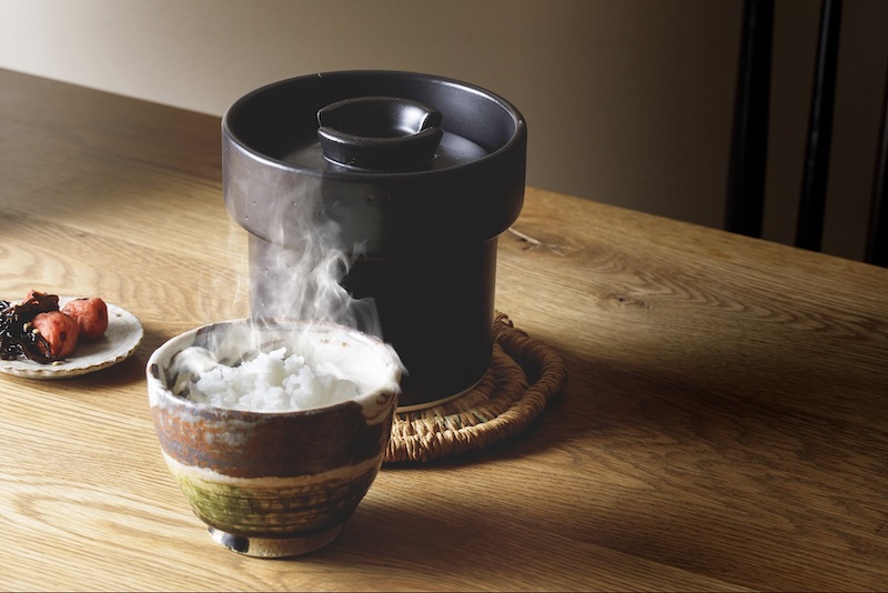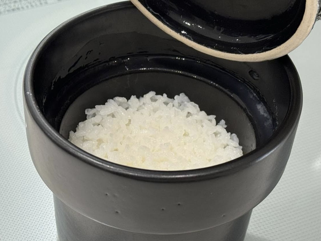 土鍋の遠赤外線加熱でしっかりした火力を伝え、高さのある土鍋のんかあで舞い上がるように炊き上げることで「お米の旨みを最大限に引き出します。」