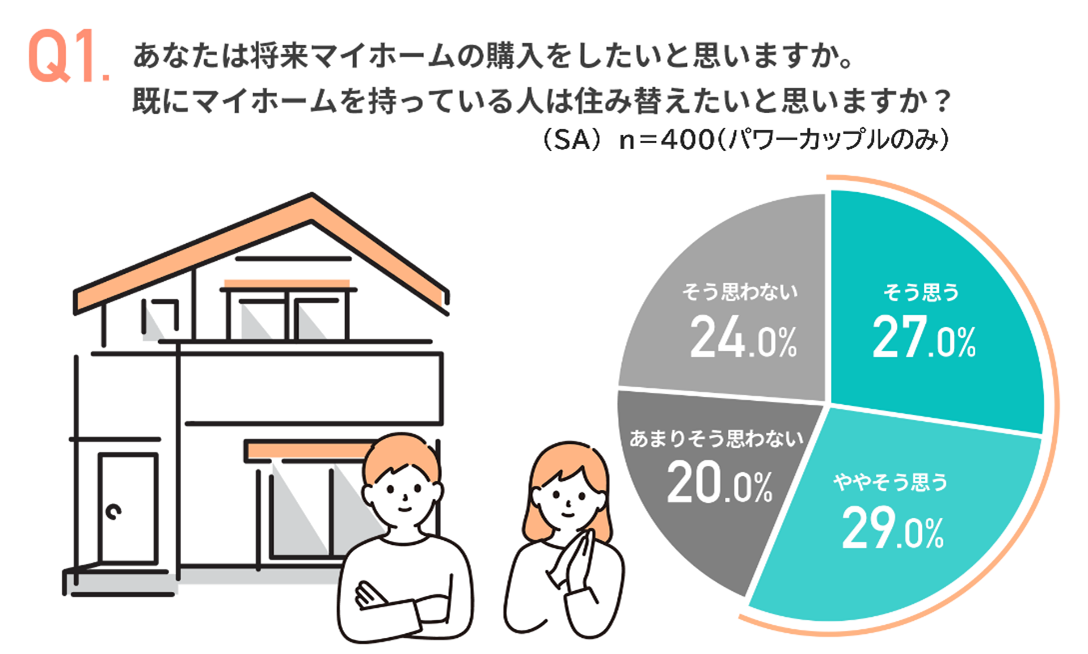 Q1.あなたは将来マイホームの購入をしたいと思いますか。既にマイホームを持っている人は住み替えたいと思いますか?(SA) n=400(パワーカップルのみ)