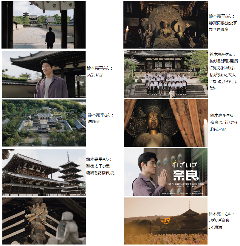 東海旅客鉄道株式会社は、第8回を迎える奈良の観光キャンペーン『いざいざ奈良』の一環として、鈴木亮平さんが出演する新CM、「法隆寺編」を2025年9月1日(月)から放送開始いたします。本キャンペーンでは、日本で初めて世界遺産に登録された「法隆寺」を舞台に、大人になった今だからこそ分かる、法隆寺の奥深い魅力に出合う旅をお届けします。また、キャンペーンに連動して、法隆寺×JR東海のオリジナル御守り付きプランや、法隆寺を創建した聖徳太子の足跡をたどる夢殿・絵殿・舎利殿・伝法堂の特別拝観プランなどの現地体験プランも発売いたします。