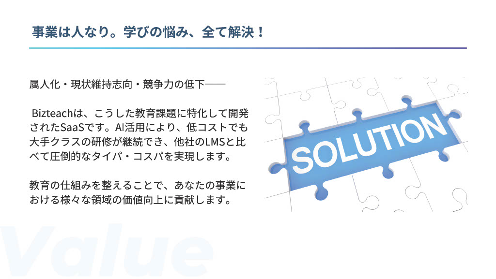 企業向けサービス資料(PDFファイル):https://bizteach.net/wp-content/uploads/2025/08/Bizteach_presentation.pdf