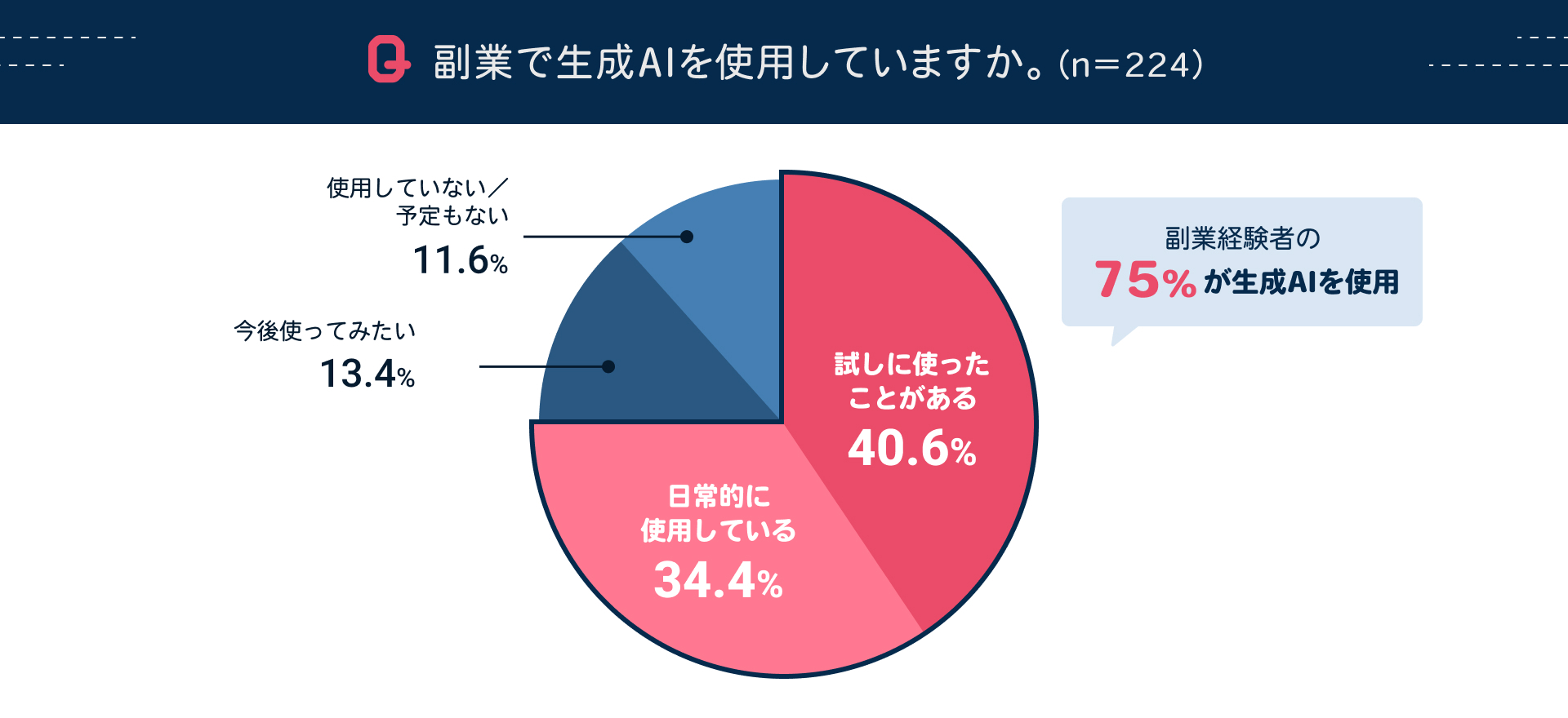 こうした結果から、生成AIはすでに「誰でも扱いやすく、すぐに業務に取り入れやすいツール」として副業に根づきつつあり、日常的な業務の一部として定着し始めていることがうかがえます。