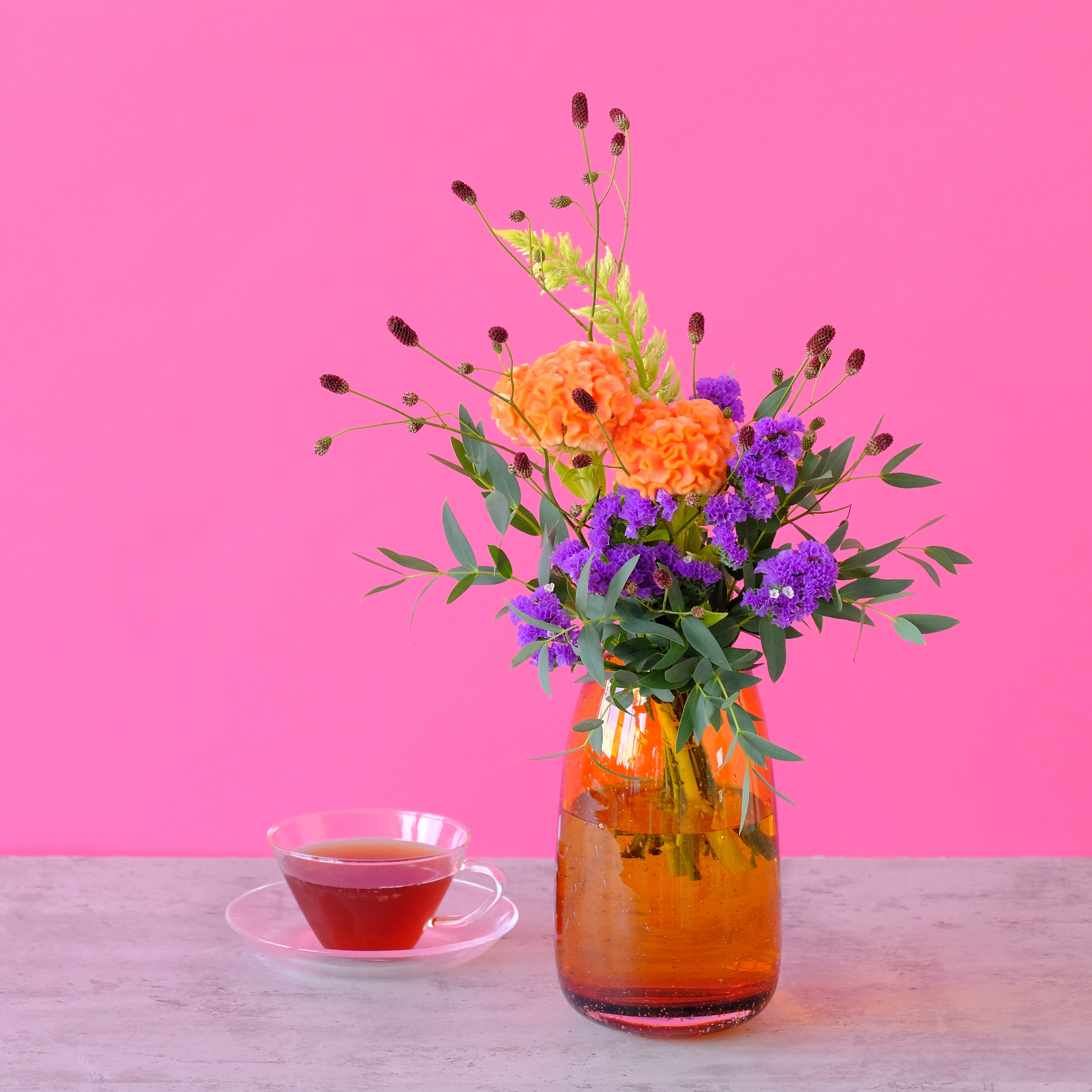 ケイトウは、見た瞬間に“質感”と“色”で心をつかまれる花。ユニークな形と、ビビッドからシックまで揃う豊かな色彩は、空間にアクセントを加えるのにぴったりです。まだまだ続く暑さにも強く、お手入れも楽ですよ。