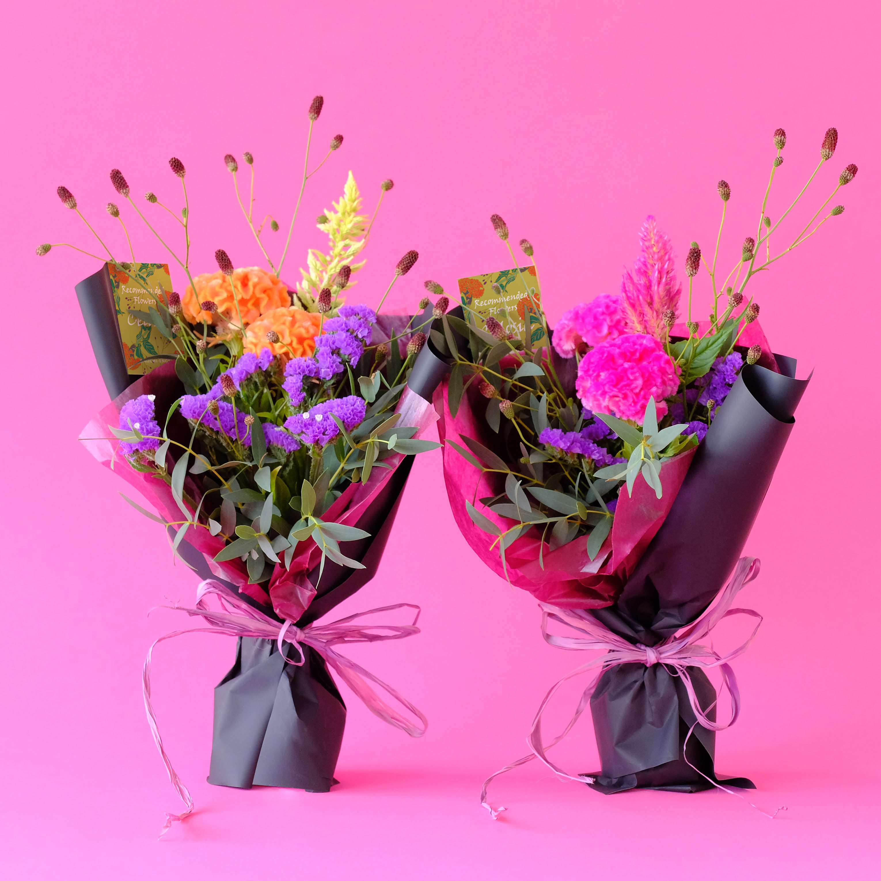 ショップおすすめのケイトウをシンプルなブーケに仕上げました。コンパクトなサイズでちょっとしたギフトやご自宅用にもおすすめです。