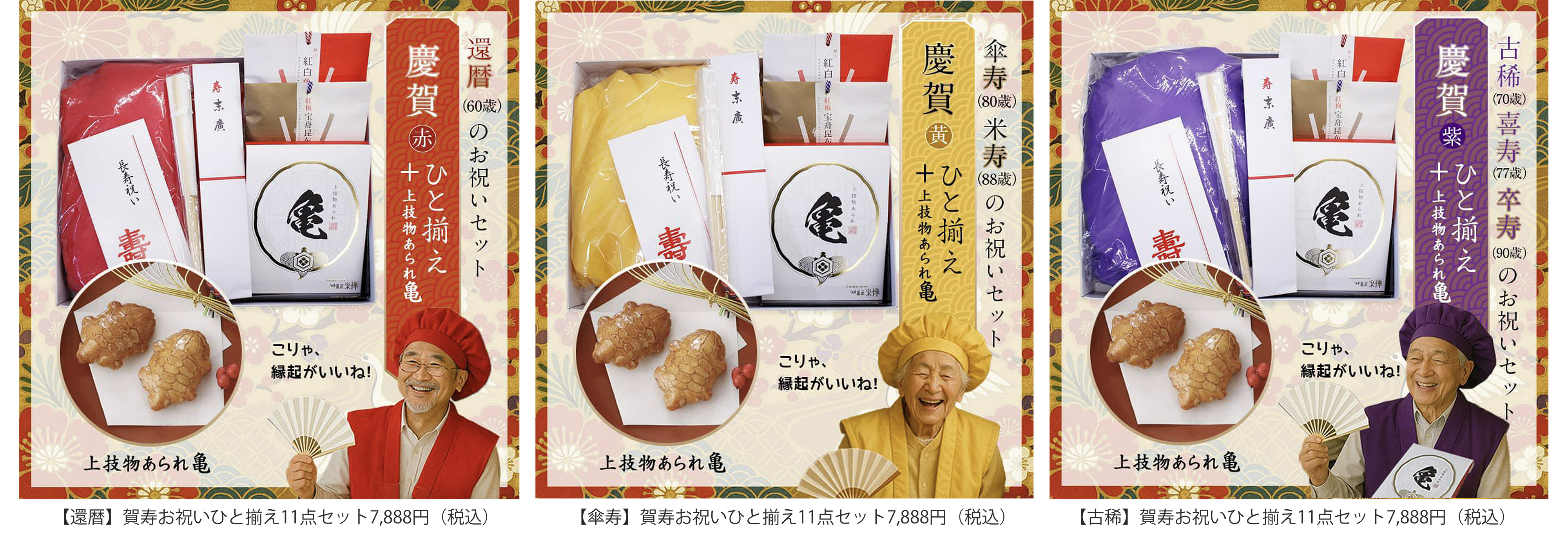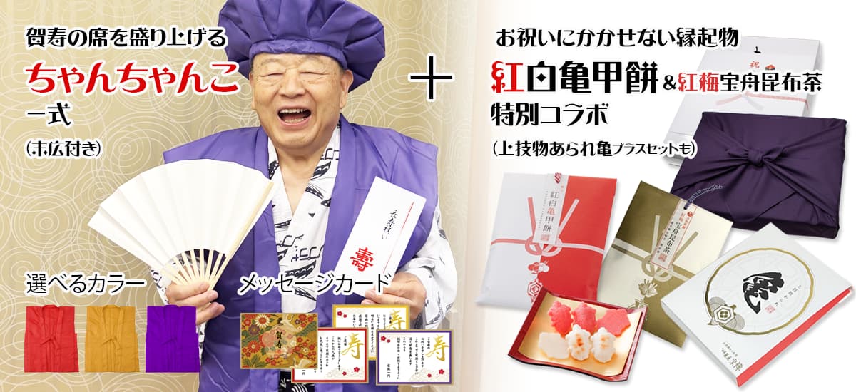 〜 縁起物の紅白餅や宝舟昆布茶・ちゃんちゃんこ・末広・大黒頭巾・感動動画で彩る「賀寿お祝いひと揃えセット」新登場!〜 |京西陣菓匠 宗禅