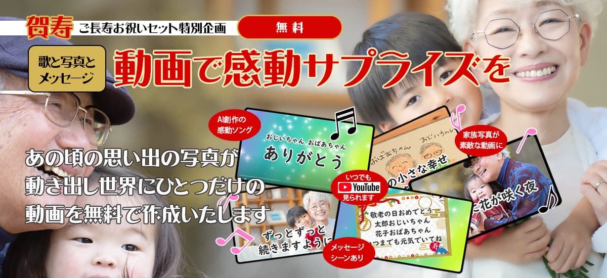 賀寿という人生の節目を、縁起物とちゃんちゃんこ、そして感動動画で彩る特別な「賀寿お祝いひと揃えセット」