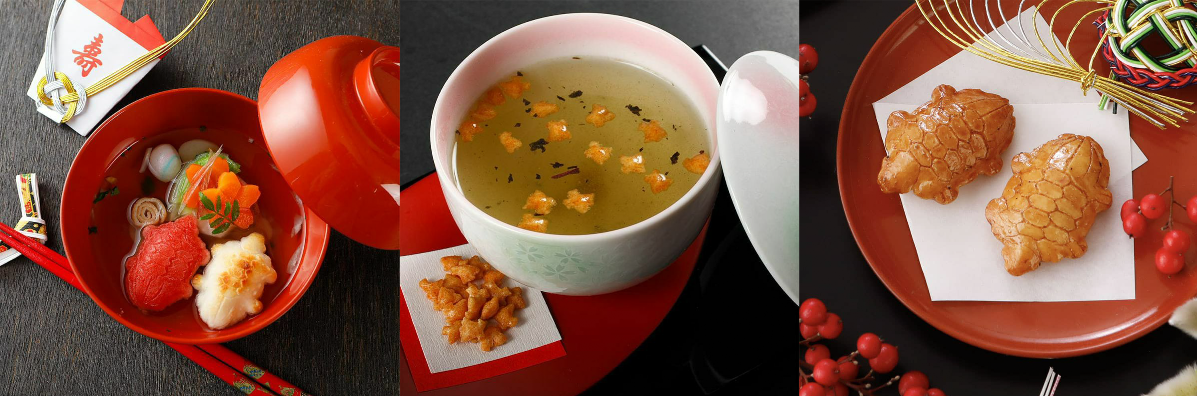 - よろこぶ(昆布)に紅梅をあしらった昆布茶に、宝舟のあられを浮かべて福を運ぶ「紅梅 宝舟昆布茶」