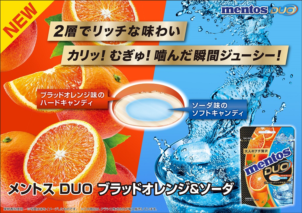 甘酸っぱさと爽快感の絶妙なコンビネーション! 「メントスDUO ブラッドオレンジ&ソーダ」が 2025年9月15日(月)に新登場!
