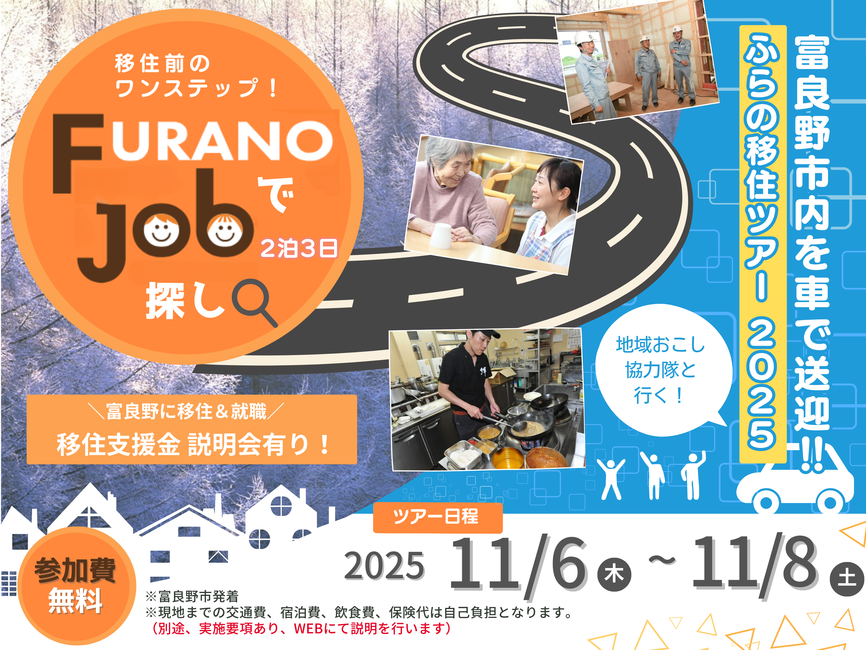 北海道富良野市(市長:北 猛俊 以下「富良野市」といいます。)の人口は、昭和40年(1965年)の36,627人をピークに、その後の官公庁の統廃合、企業の撤退、農家戸数の減少、少子高齢化などにより減少し、令和5年には2万人を下回ってしまいました。人口減少は、労働力や担い手の不足、地域経済の衰退、高齢化の進行などに直結しており、まちが今後も持続していくための重要かつ喫緊の課題です。 このことから富良野市では、次代を担う人材の確保と地域経済の発展を目指し、移住者や定住者を増やすことに取り組んでいます。 そしてこの度、富良野市で活動する地域おこし協力隊と協同で、観光ではわからない富良野市の魅力を発信するとともに、移住を検討している方の不安を解消する2つのツアーを開催します。