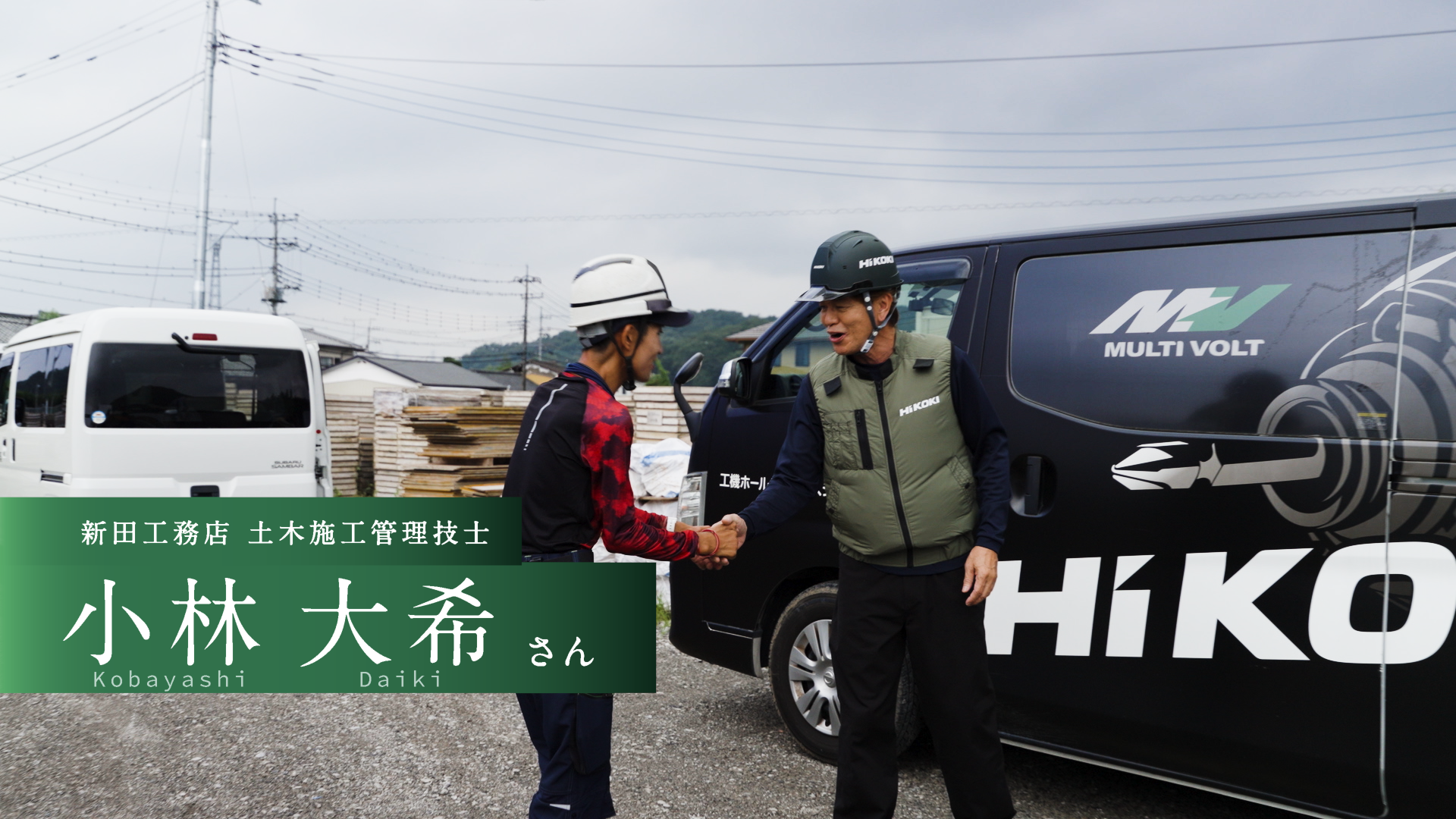 動画に出演するのは、2025年3月に開催された「HiKOKI BUILDER’S SPIRIT AWARD」で総合グランプリを受賞した小林大希さん。幼少期に大きな怪我を負い、長期のリハビリを経験しながらも、父の営む建設業をきっかけに土木の世界へ足を踏み入れた。以来、数々の資格を取得し、現場技術代理人として活躍している。
