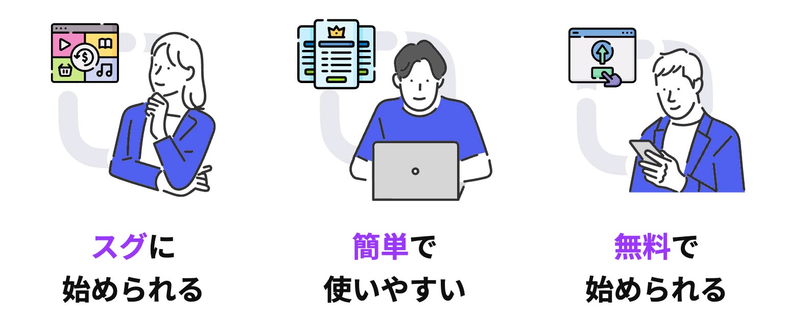サブスクエンジンは、誰でも無料、面倒な審査もなく、登録したその日のうちから「完全オリジナル」のサブスクサービスをスタートできる、ビジネスプラットフォームです。