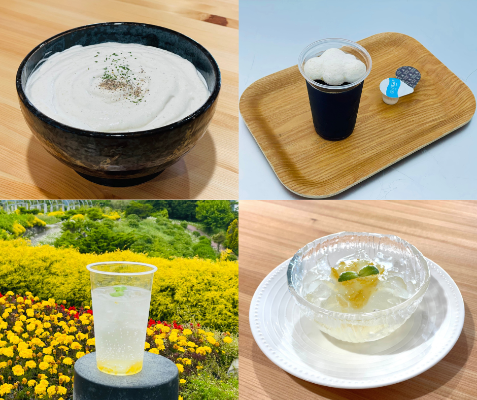 天候条件が揃った時にしか見られない雲海を、視覚だけでなく味覚でも味わってほしいという思いから誕生した雲海メニューや、空の爽やかをイメージした「スカイブルーフロート」、そのほかにも地元特産の柚子を使ったソーダやゼリーなど、この地ならではのメニューを豊富にご用意しています。