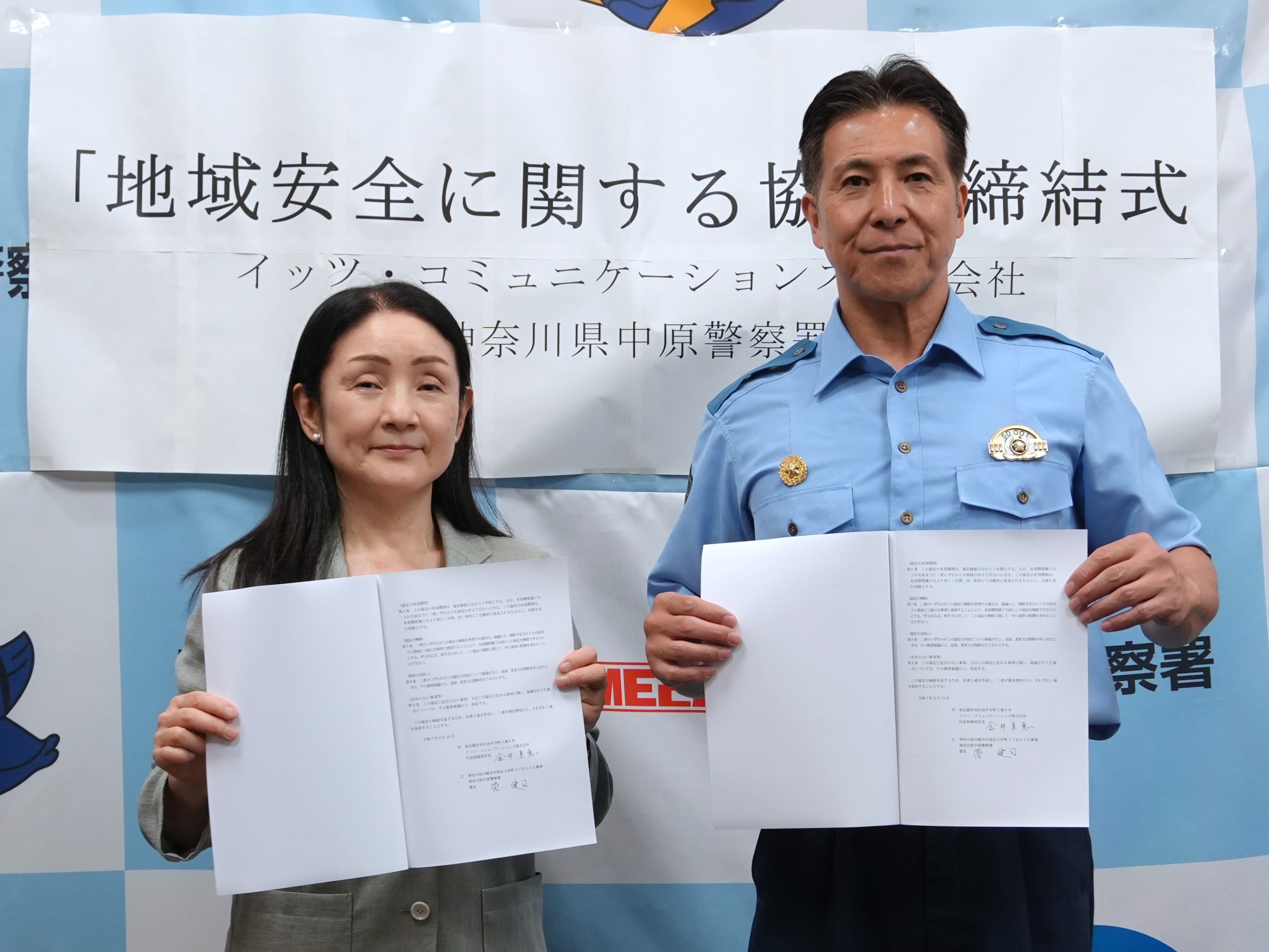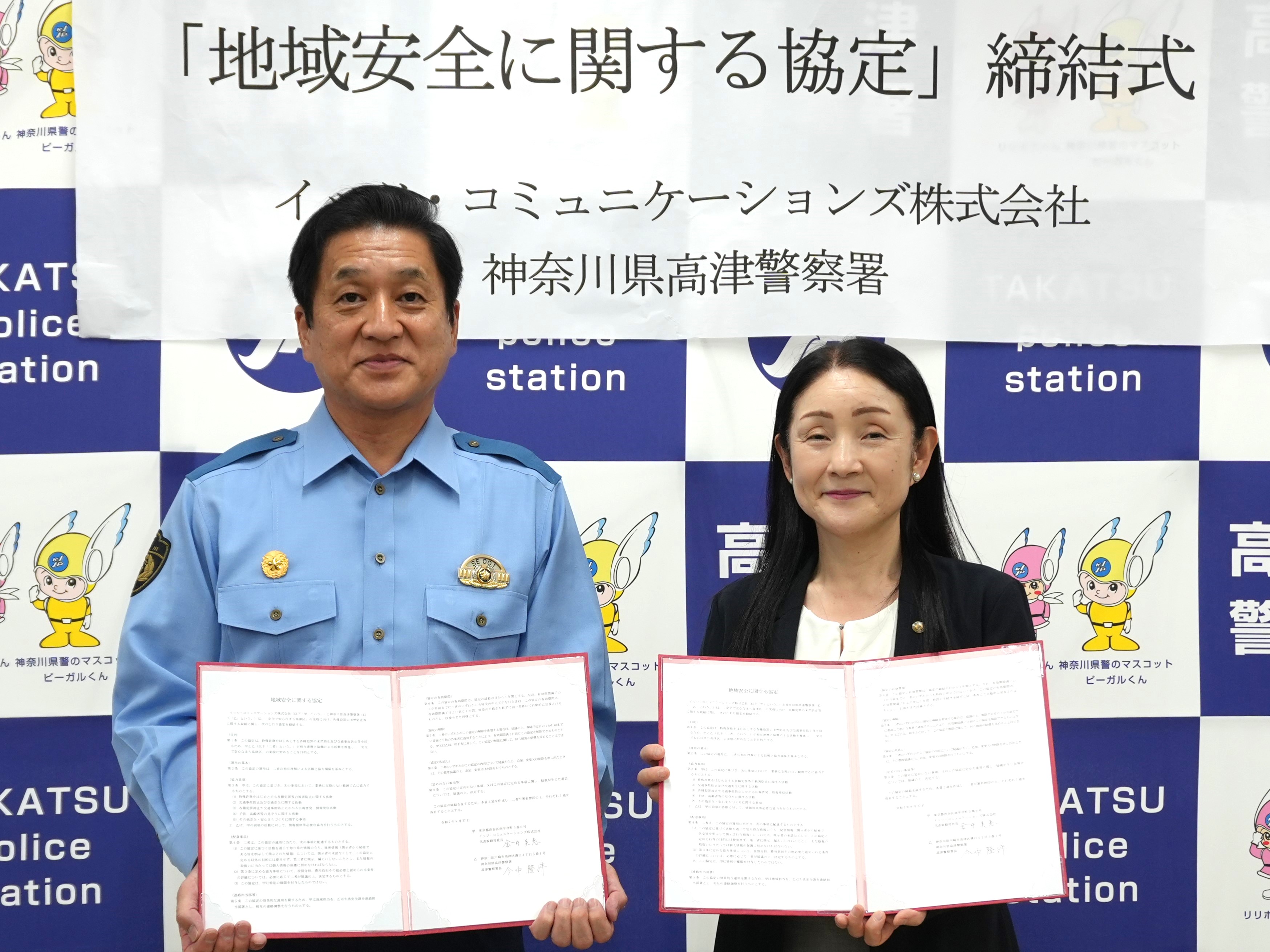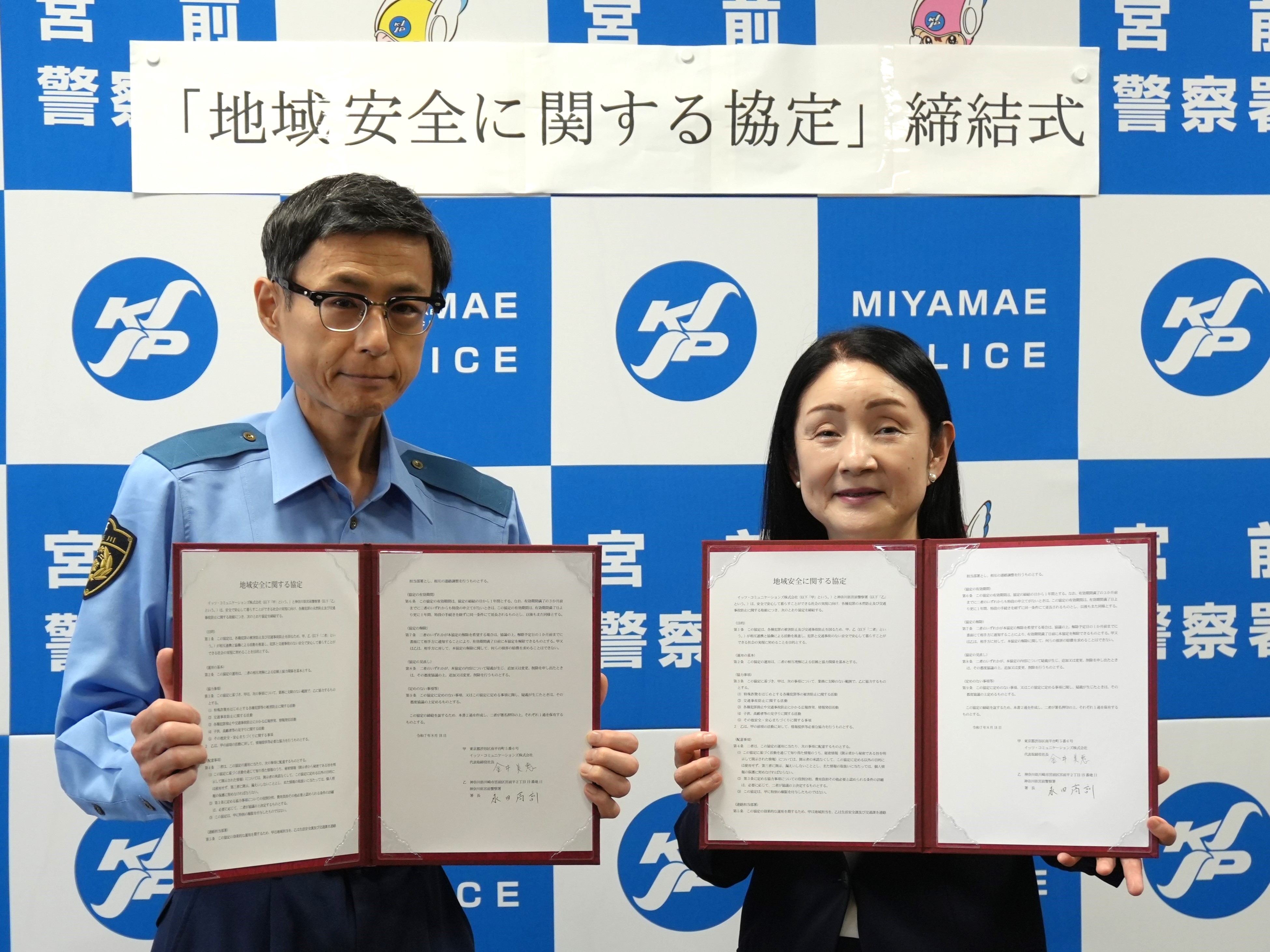 イッツ・コミュニケーションズ株式会社(本社:東京都世田谷区 代表取締役社長:金井美惠 以下、イッツコム)は、東急線沿線(神奈川県川崎市を含む)の通信・放送インフラを担う企業として、「安心と快適さ」をお届けすることを経営理念に掲げており、特殊詐欺などの被害が増える中で、安全で豊かな街づくりを目指して、サービスエリア内にある川崎市内の警察署3署(神奈川県警察 宮前警察署・中原警察署・高津警察署)と「地域安全に関する協定」(以下、本協定)を締結しました。