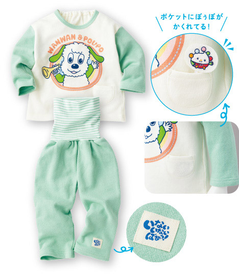 ポケットからキャラクターが飛び出す仕掛けパジャマ。